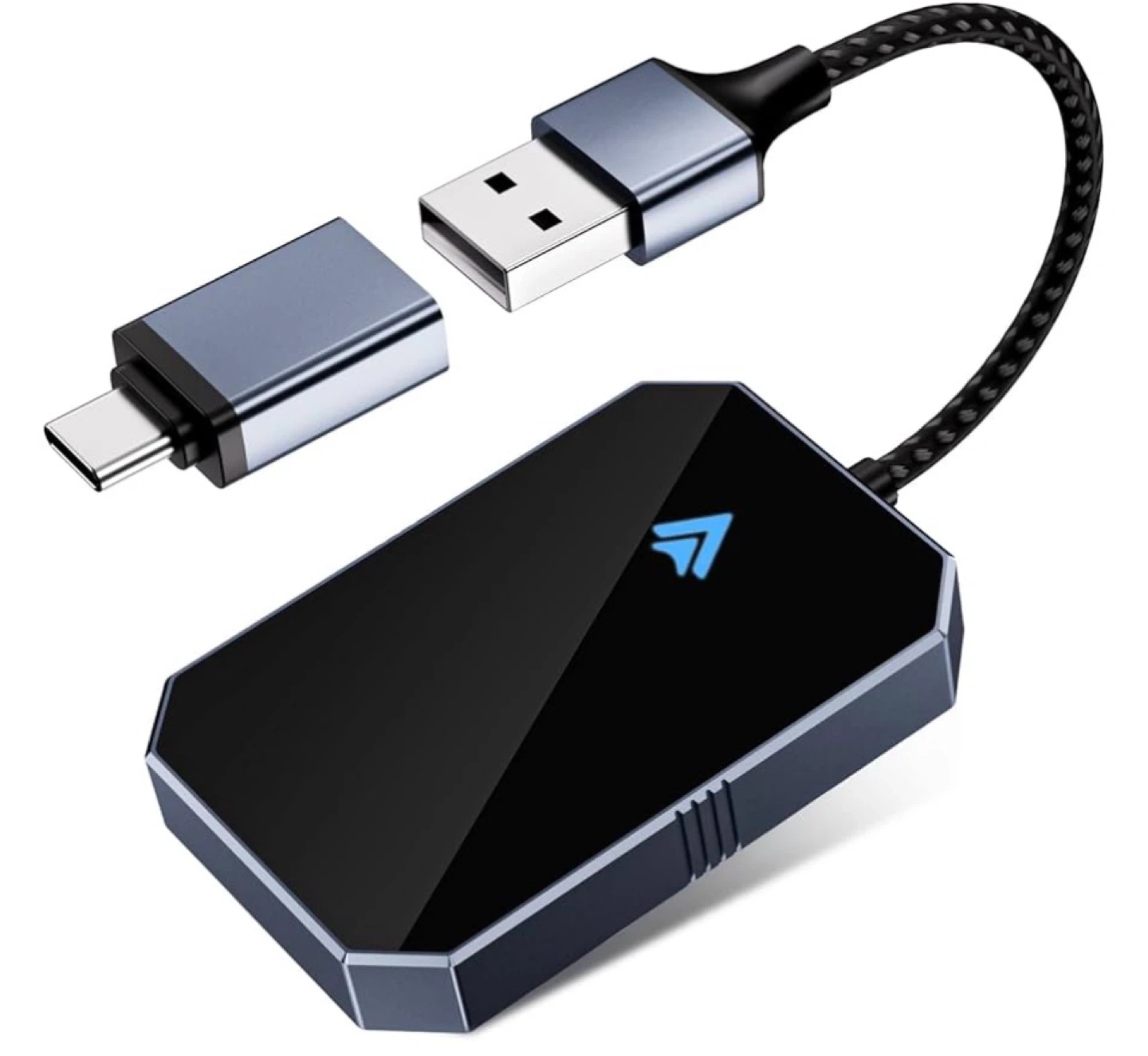 This is a 2-in-1 wired to wireless dongle that plugs into your car's USB port. It enables CarPlay and Android Auto functionality wirelessly. Simple plug-and-play setup for easy integration!