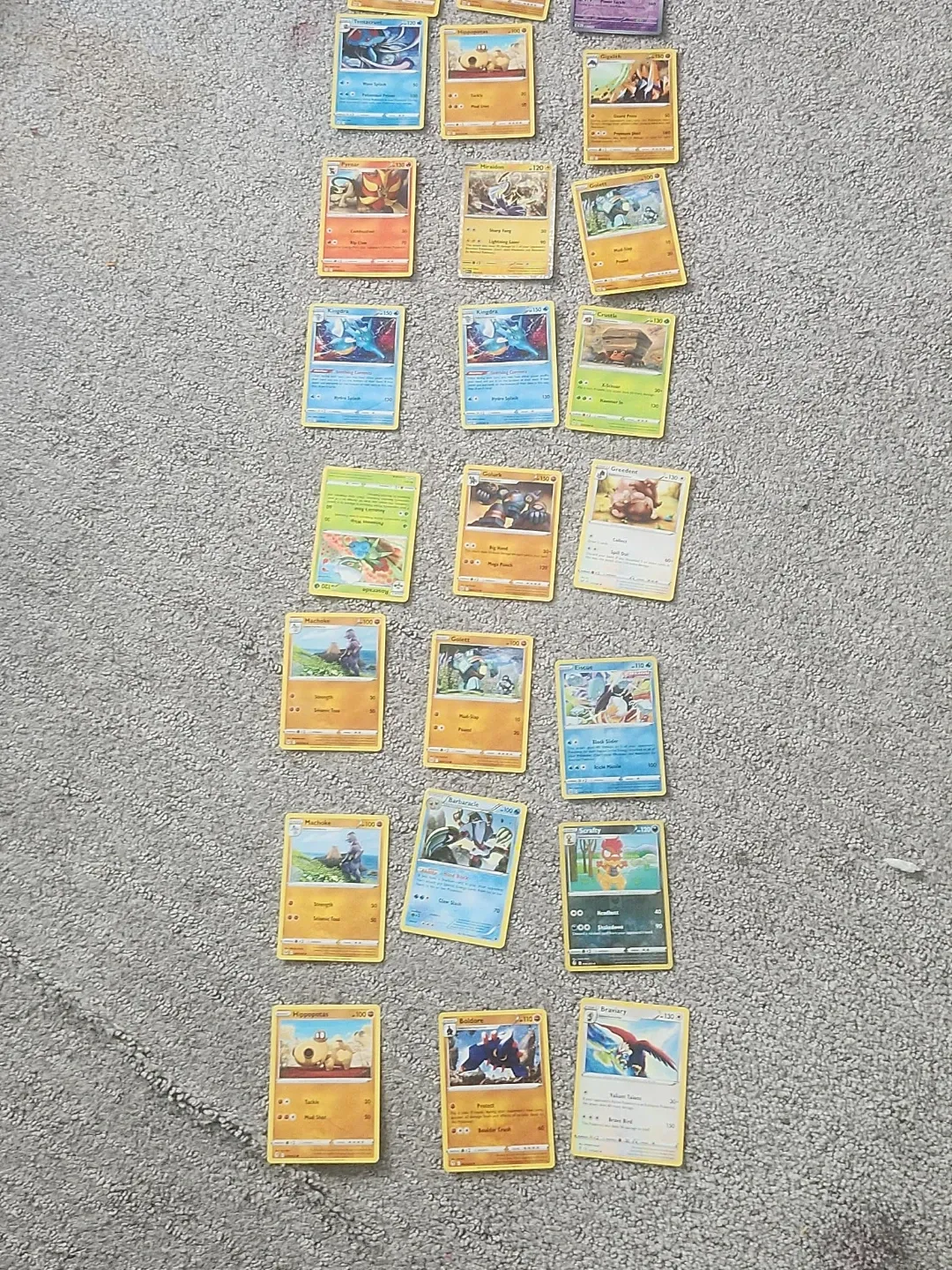 Collection of various Pokémon trading cards. These cards feature different Pokémon characters and stats. They're great for collectors or for playing the Pokémon Trading Card Game!