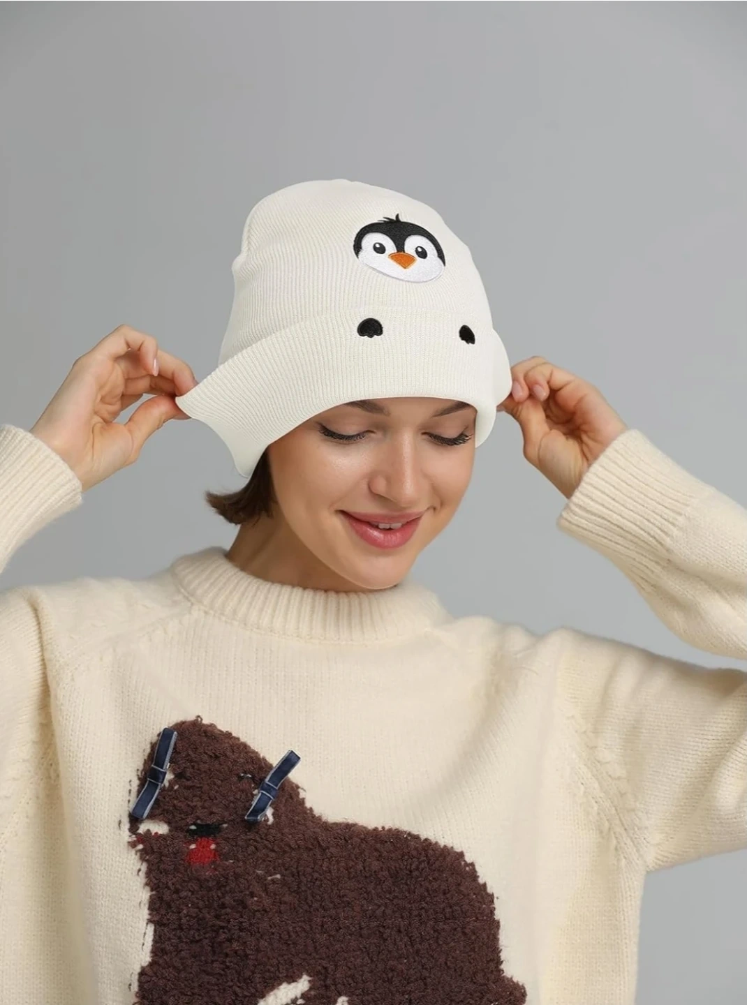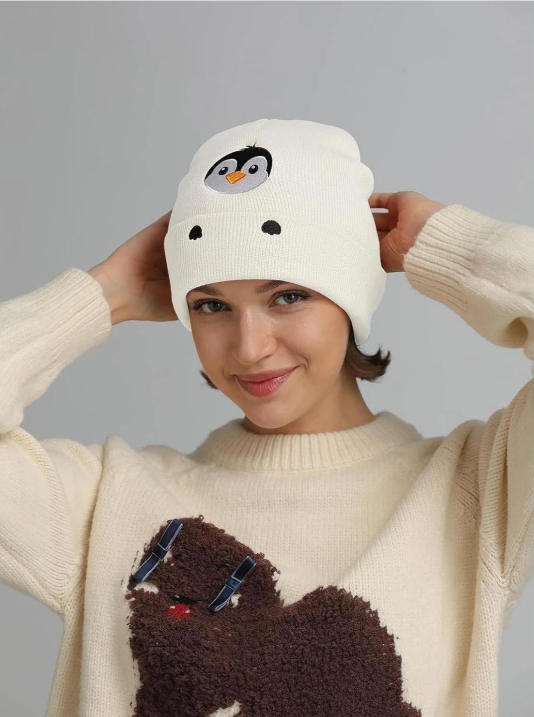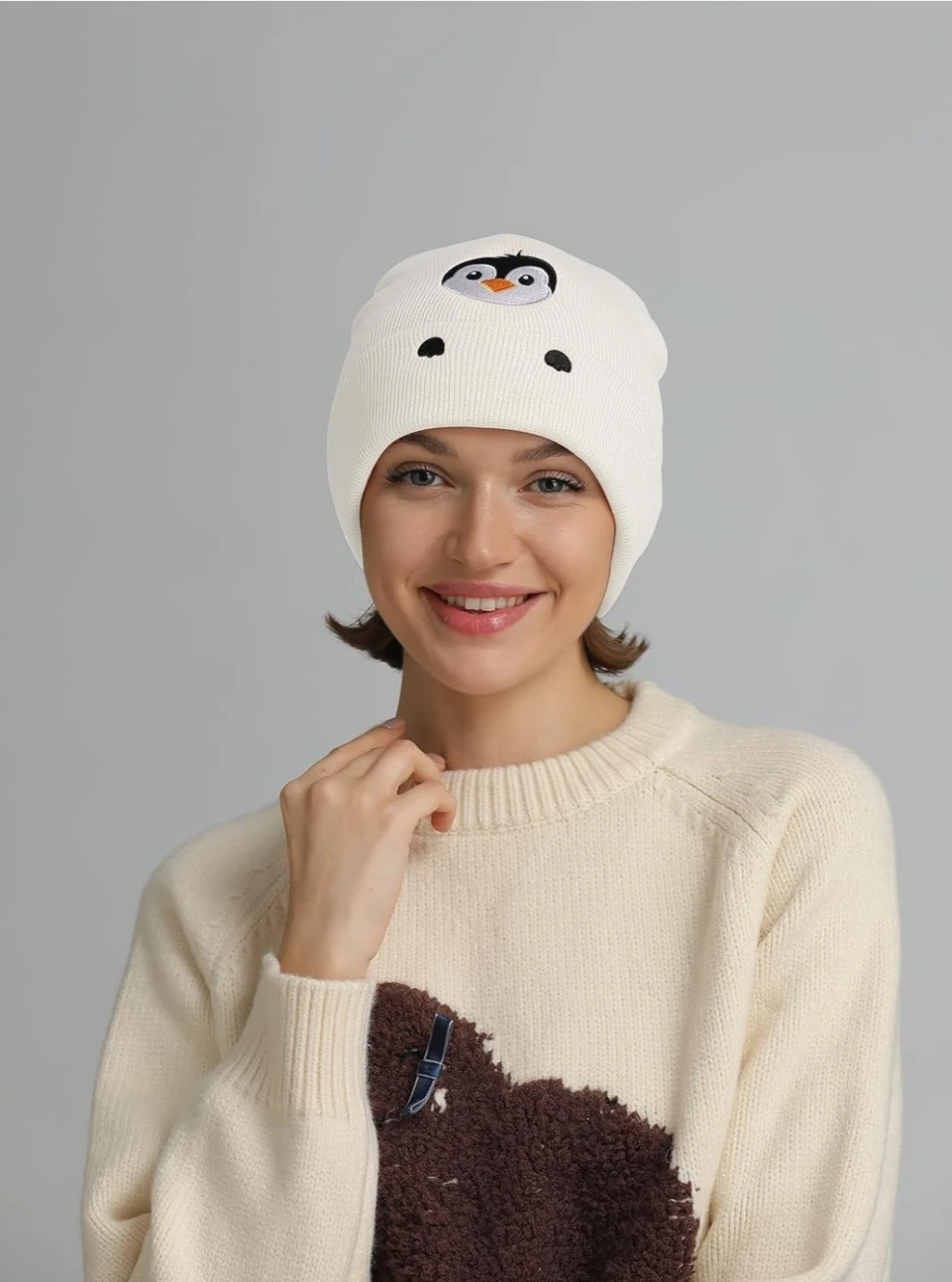 The soft knit design keeps your head warm while the charming penguin embroidery adds a playful personality to your outfit.