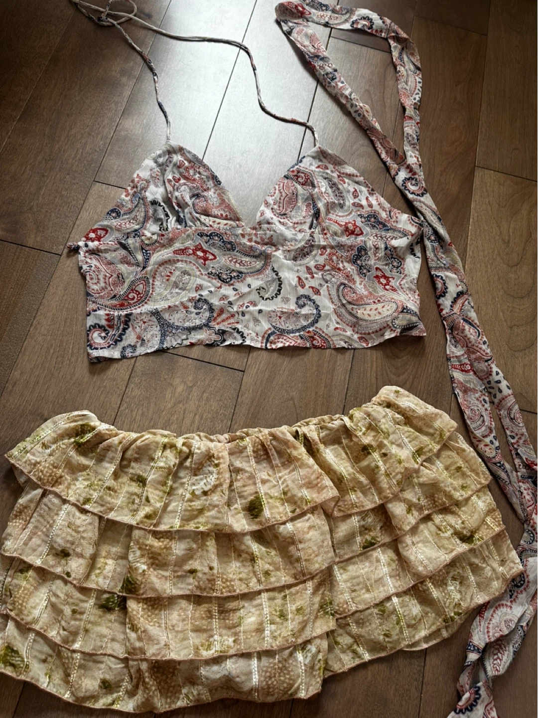 Missguided Paisley Print Crop Top and Ruffled Shorts Set