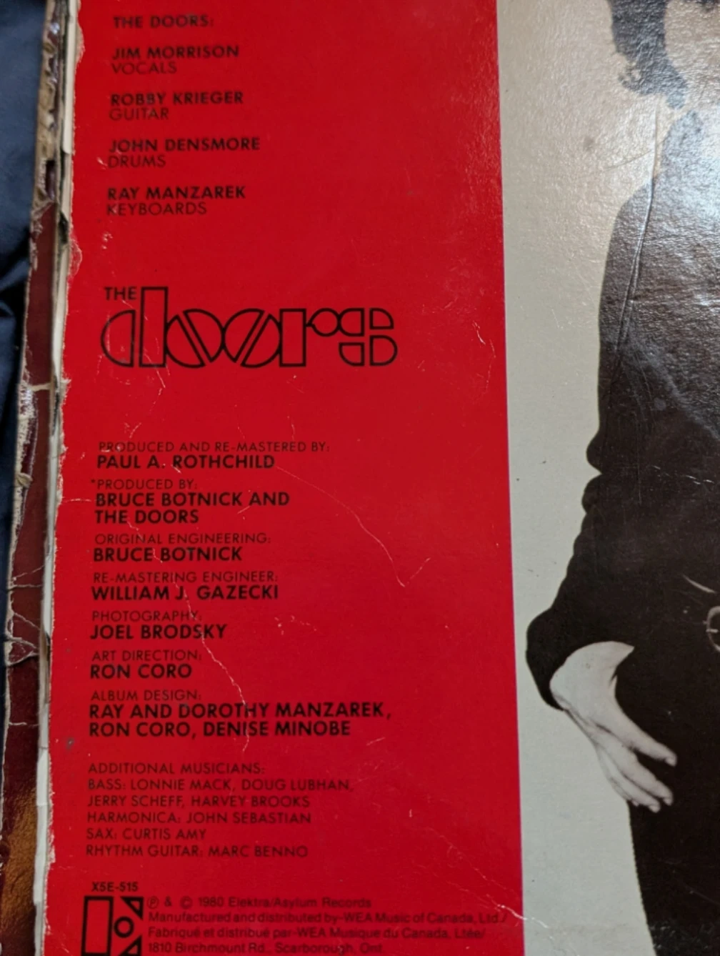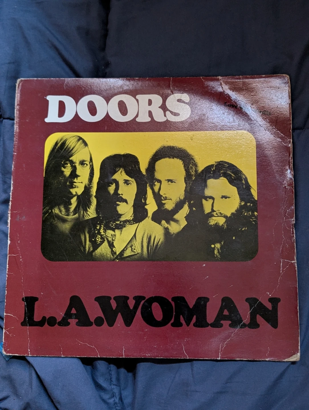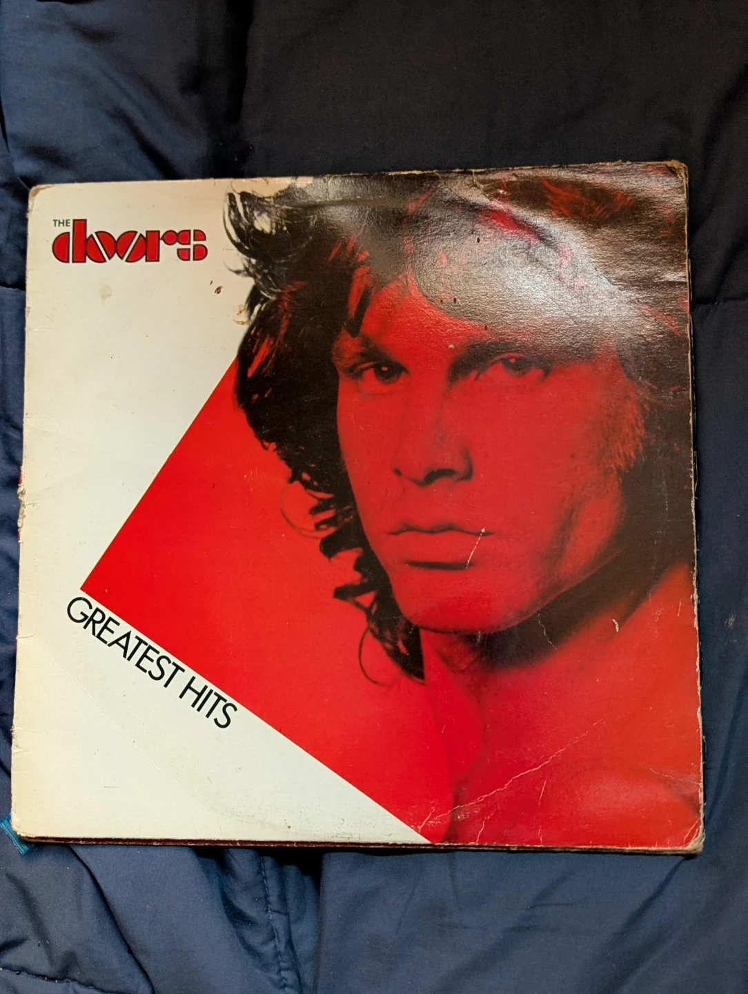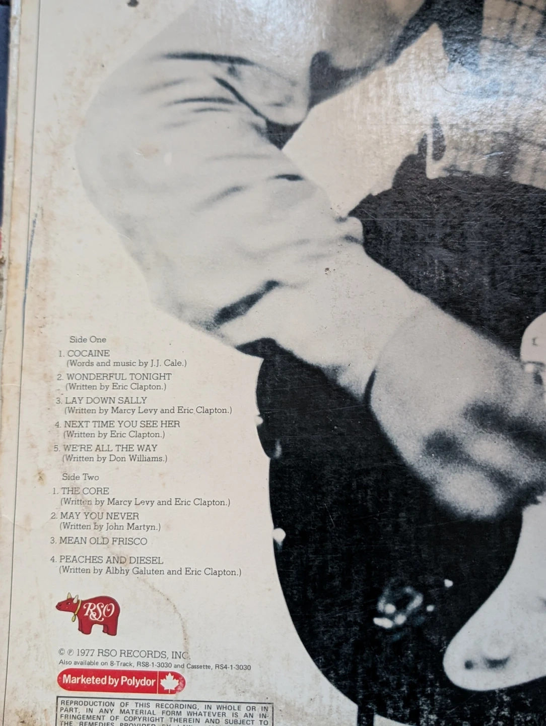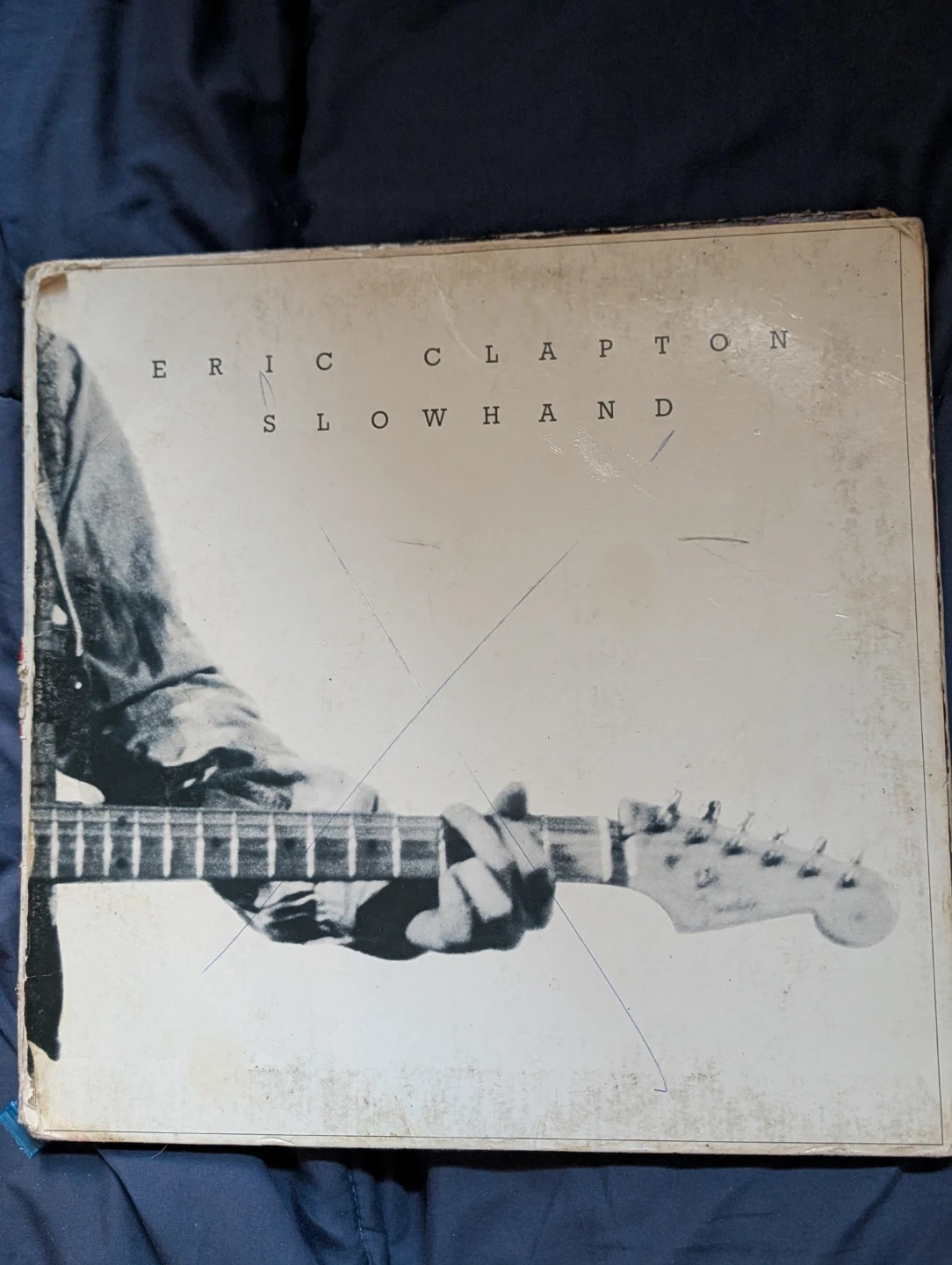This is Eric Clapton's "Slowhand" vinyl record. It's a classic album for any music enthusiast. As well as both LA WOMEN AND GREATEST HITS by The Doors. All have original paper i side and considering their age in quite excellent condition.