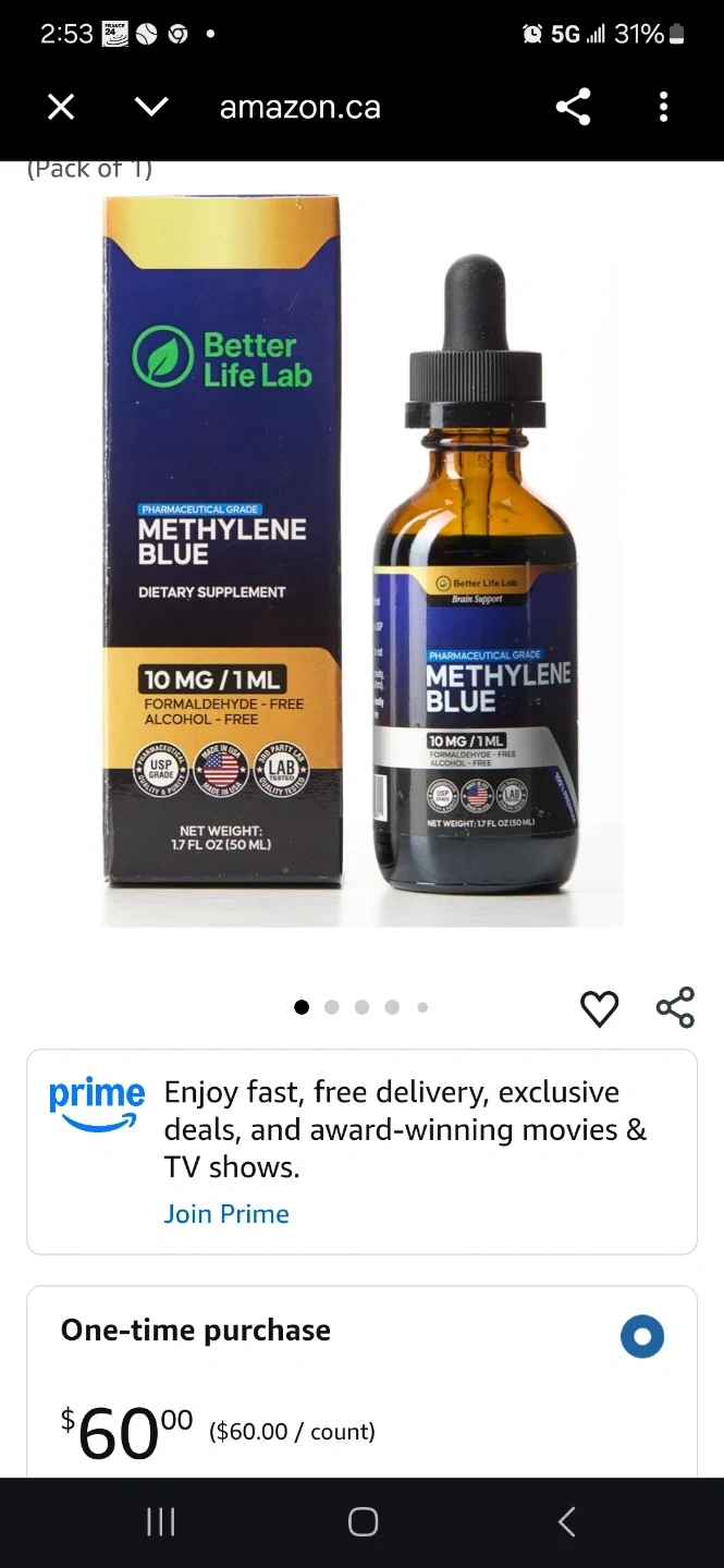 Pharmaceutical Grade 99.99% Methylene Blue with Dropper, Healthy Dietary Supplement for Humans, Formaldehyde Free (50 ml 1% Bottle) 1.7 Fluid Ounce (Pack of 1)