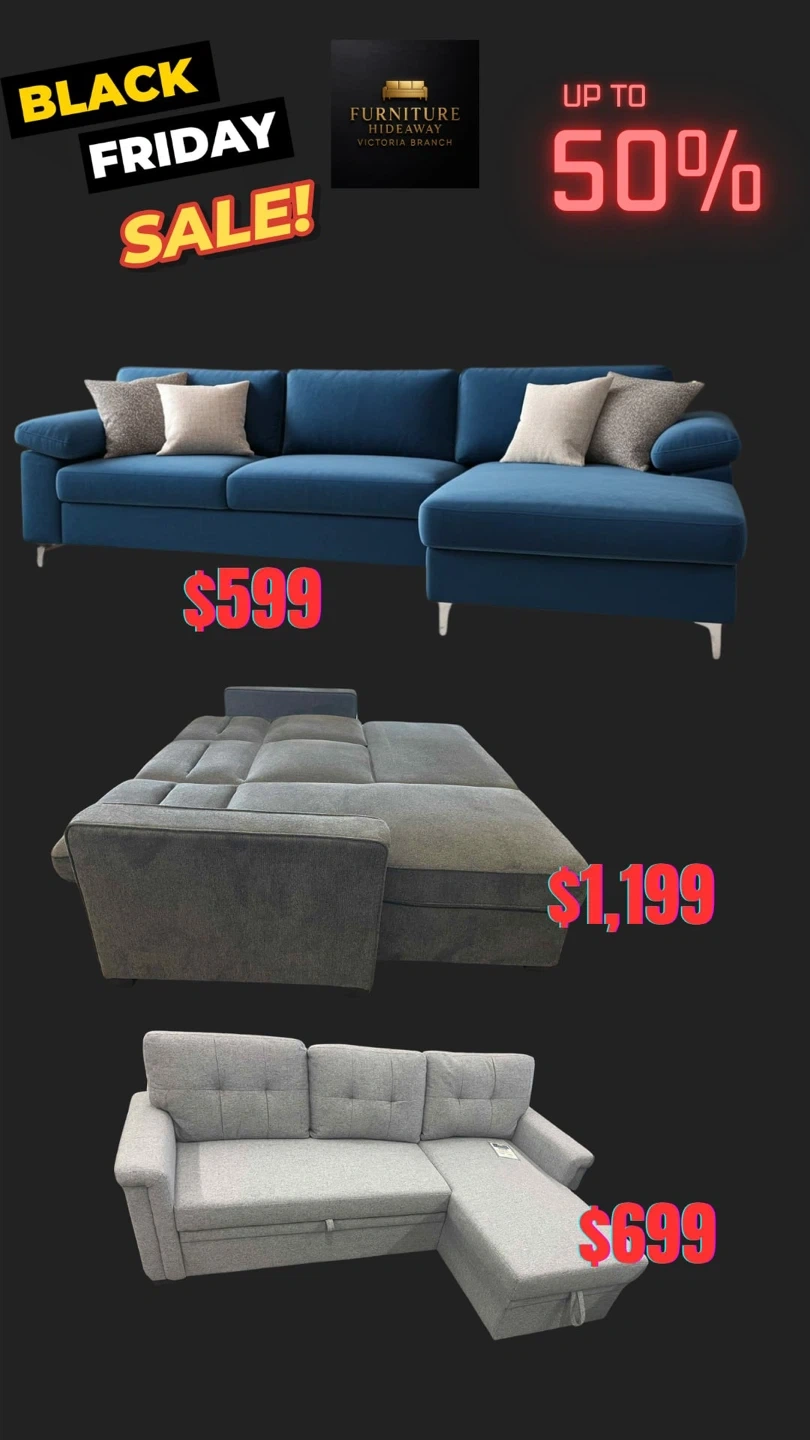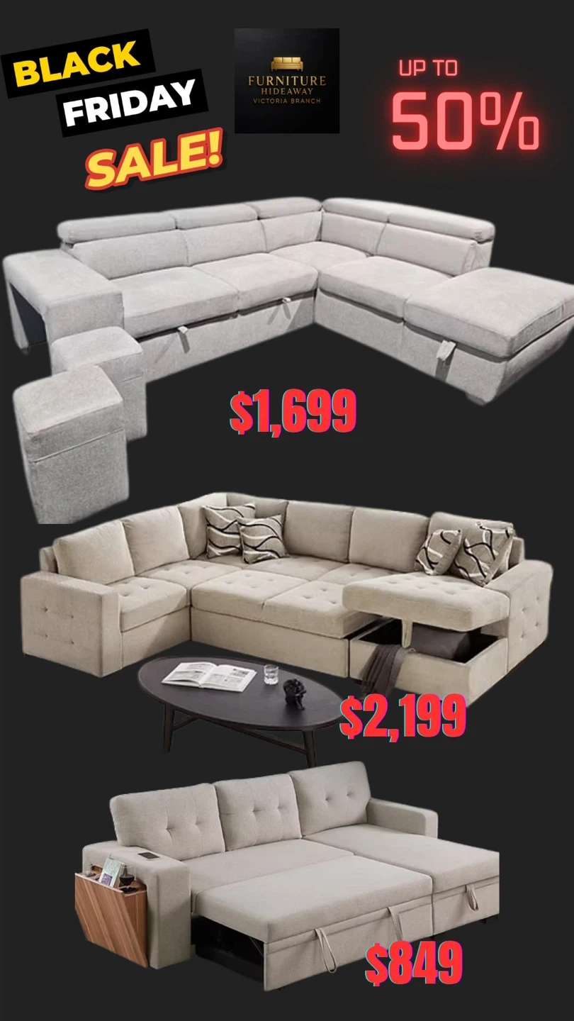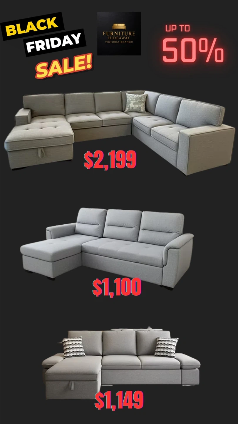 20Don’t Wait! Pre- Black Friday Furniture Sale starts NOW!😱 Head to our showroom for exclusive deals! 📍206-314 Wale Road Weekdays 11-7pm Weekends 10-6pm We offer cheap delivery or pick up if you prefer that option. 🚛📦 www.furniturehideaway.ca