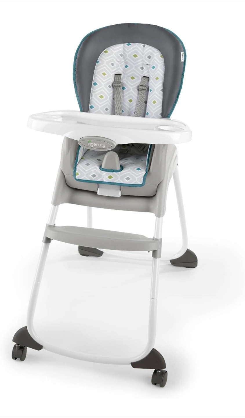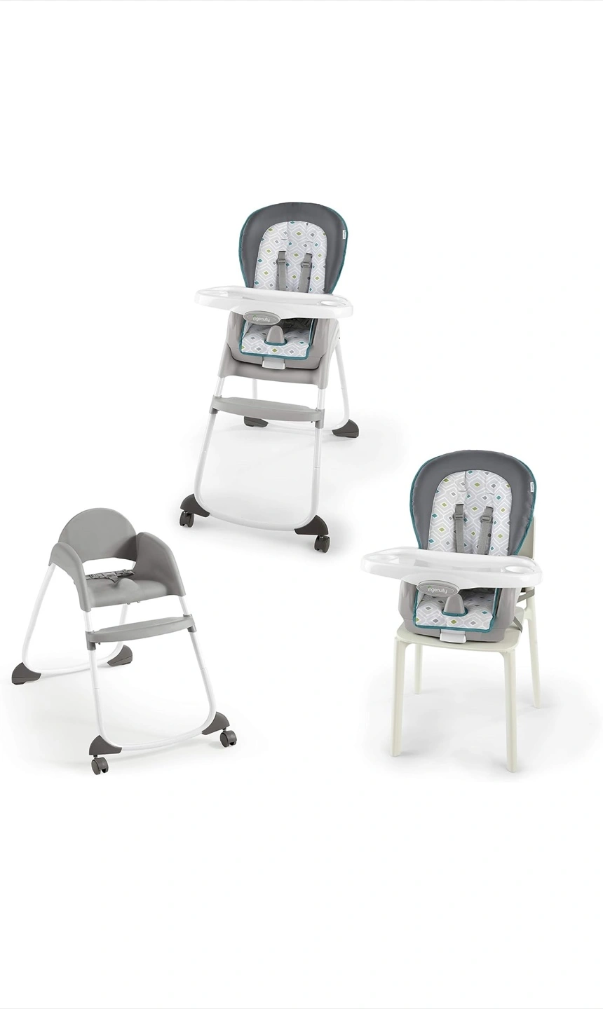 Check out this Ingenuity Trio 3-in-1 high chair! It's in great condition and ready for a new home. This versatile high chair adapts as your little one grows, offering three modes of use: a full-size high chair, a booster seat, and a toddler chair. Perfect for mealtime and beyond!