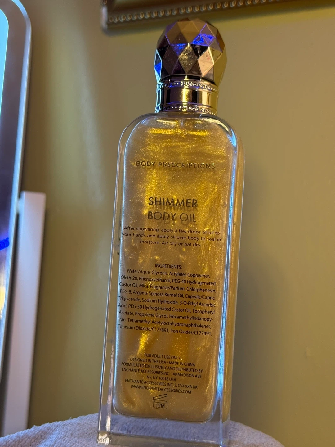 Body Prescriptions Shimmer Body Oil. Infused with vitamin C. Apply a few drops after showering to add shimmer to your skin. 3.7 fl oz / 110 mL.