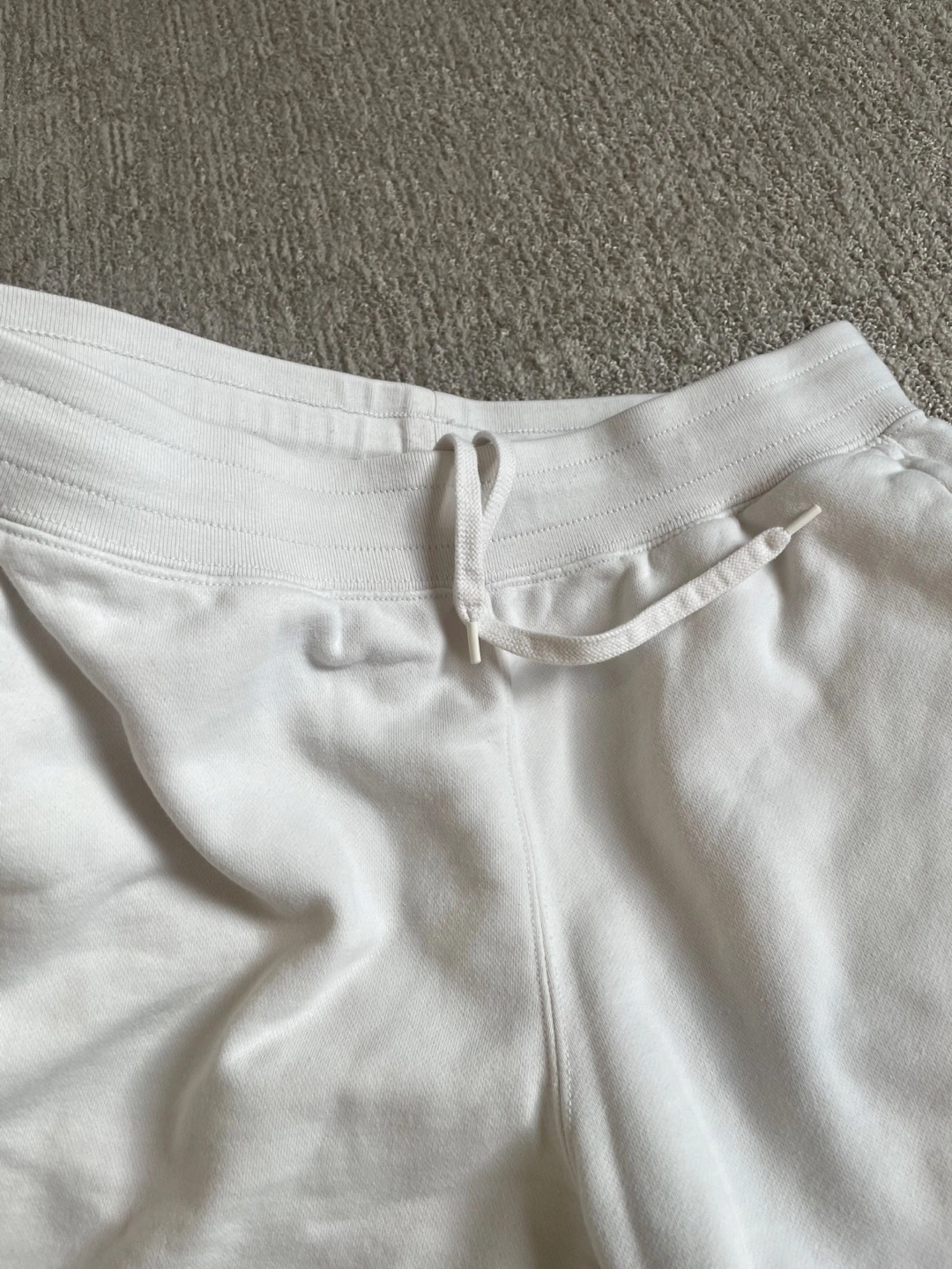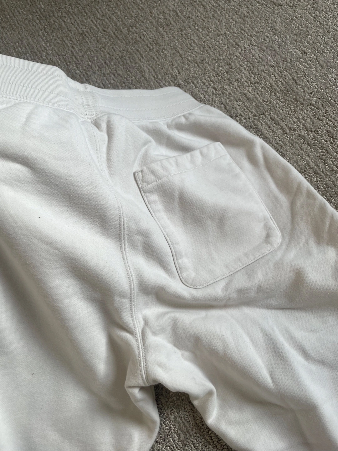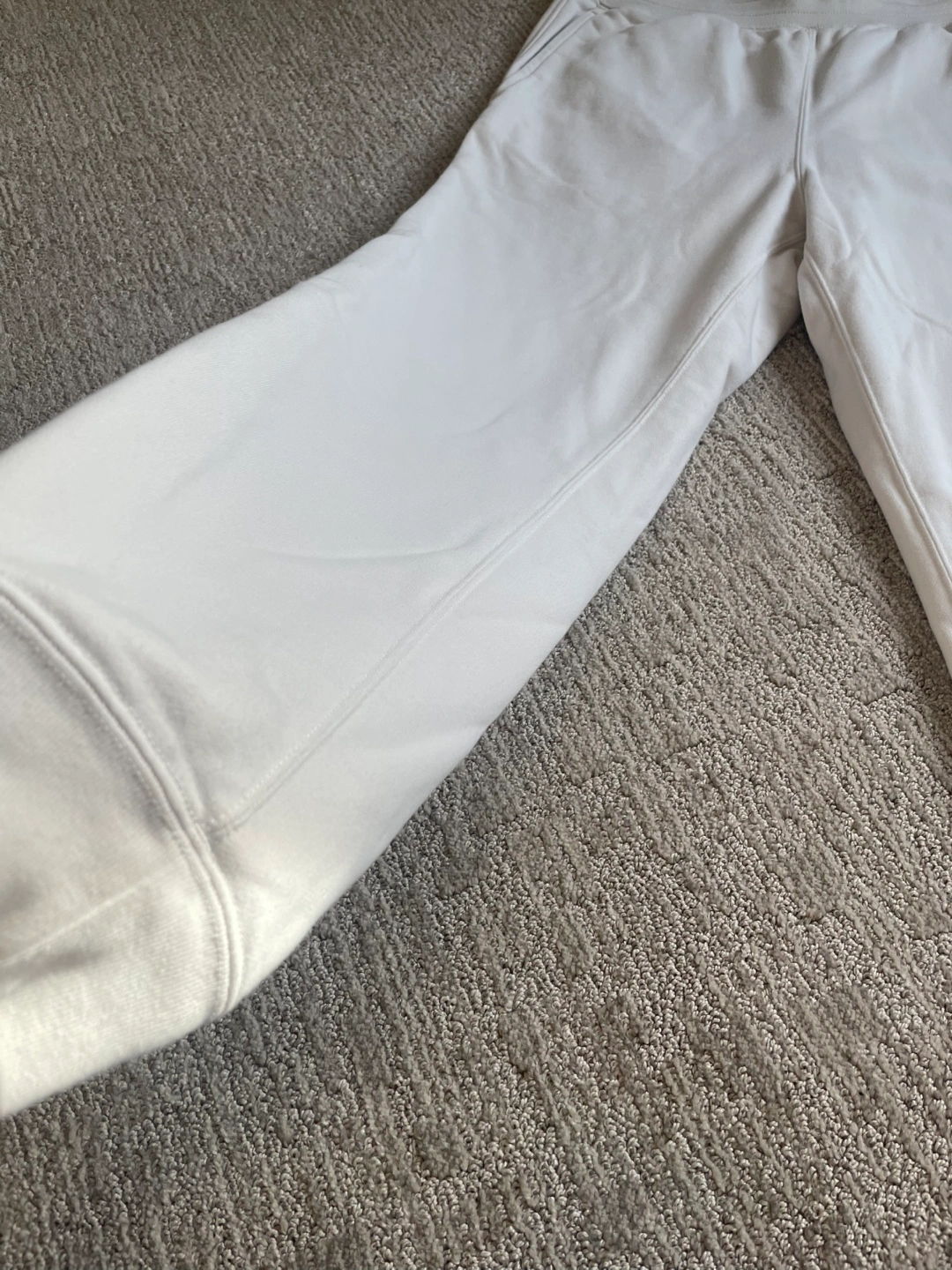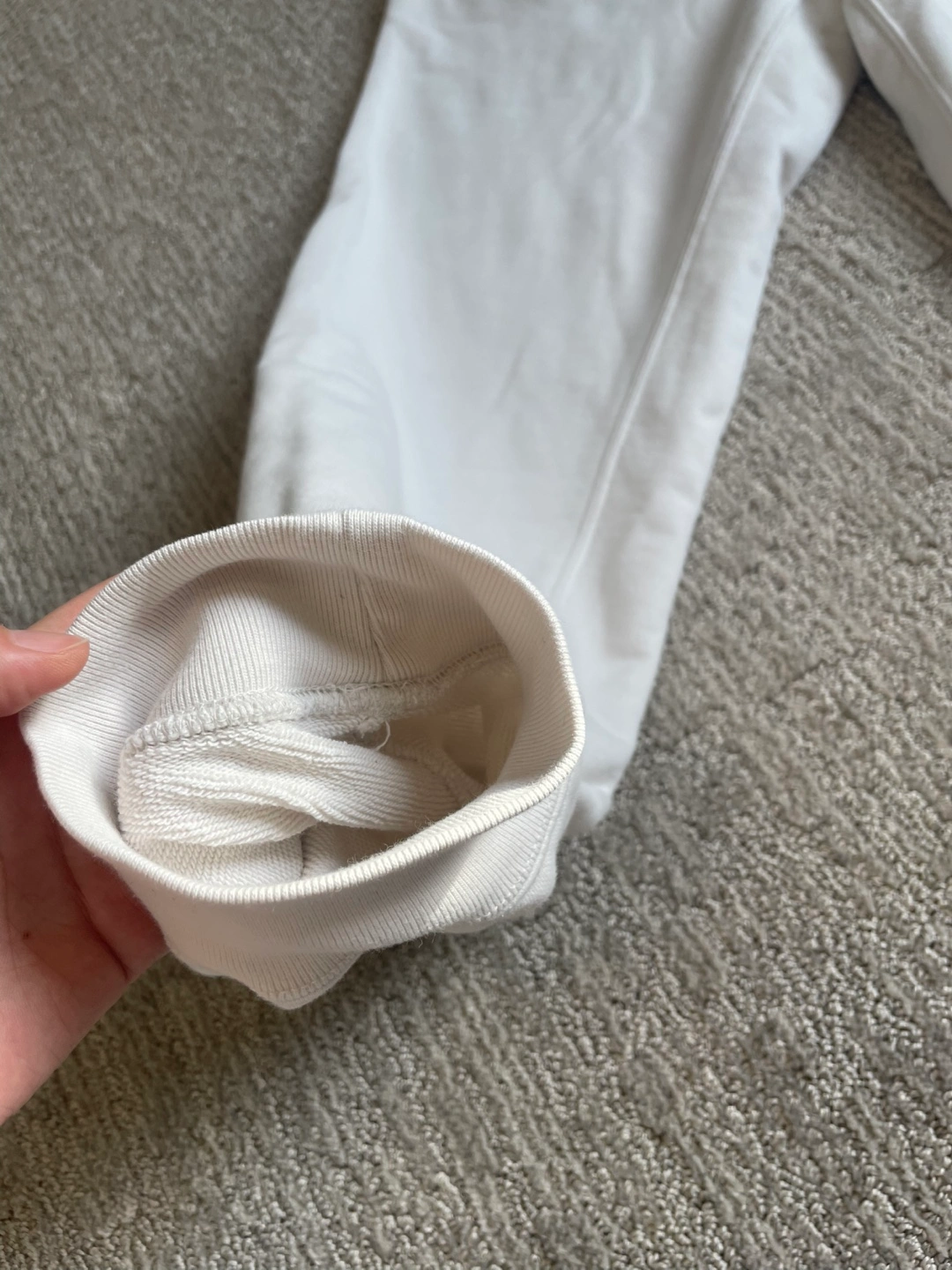 These UNIQLO sweatpants are a versatile cream colour. They're made from a comfortable cotton blend and feature an elastic waistband with a drawstring. A back pocket adds extra convenience. These are great for lounging or casual wear!