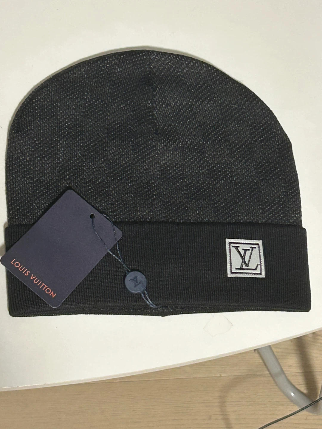 Louis Vuitton knit beanie. Comes with original packaging and tags. It's a stylish accessory for cooler weather.