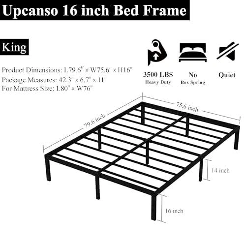 Condition - Like new, NT Bed Frame King Size Metal Platform with Storage - Upcanso 💡 Why You’ll Love It: ✅ Heavy Duty Steel Construction: Built with 3,500 lbs weight capacity for long-lasting support and stability ✅ Under Bed Storage Space: 14 inch clearance under the frame for convenient storage ✅ Durable & Quiet Design: Polished black metal finish with no squeak or noise during use ✅ Easy Assembly Included: All hardware, instructions, and tools are provided for quick setup 📦 Product Details: • Brand: Upcanso • Color: Black • Dimensions (Assembled): L79.6" x W75.6" x H16" • Mattress Size Compatible: King (80"x76") • Material: Steel slats with metal frame • Finish Type: Polished • Included Components: Slat, hardware, instructions, tools • Weight Capacity: 3,500 lbs • Rating: ⭐ 4.5 out of 5 based on 3,423 reviews 🔗 Perfect for: Homeowners seeking a durable, functional, and space-efficient king size bed frame with storage options. SKU - 941 101*22*17 13.7