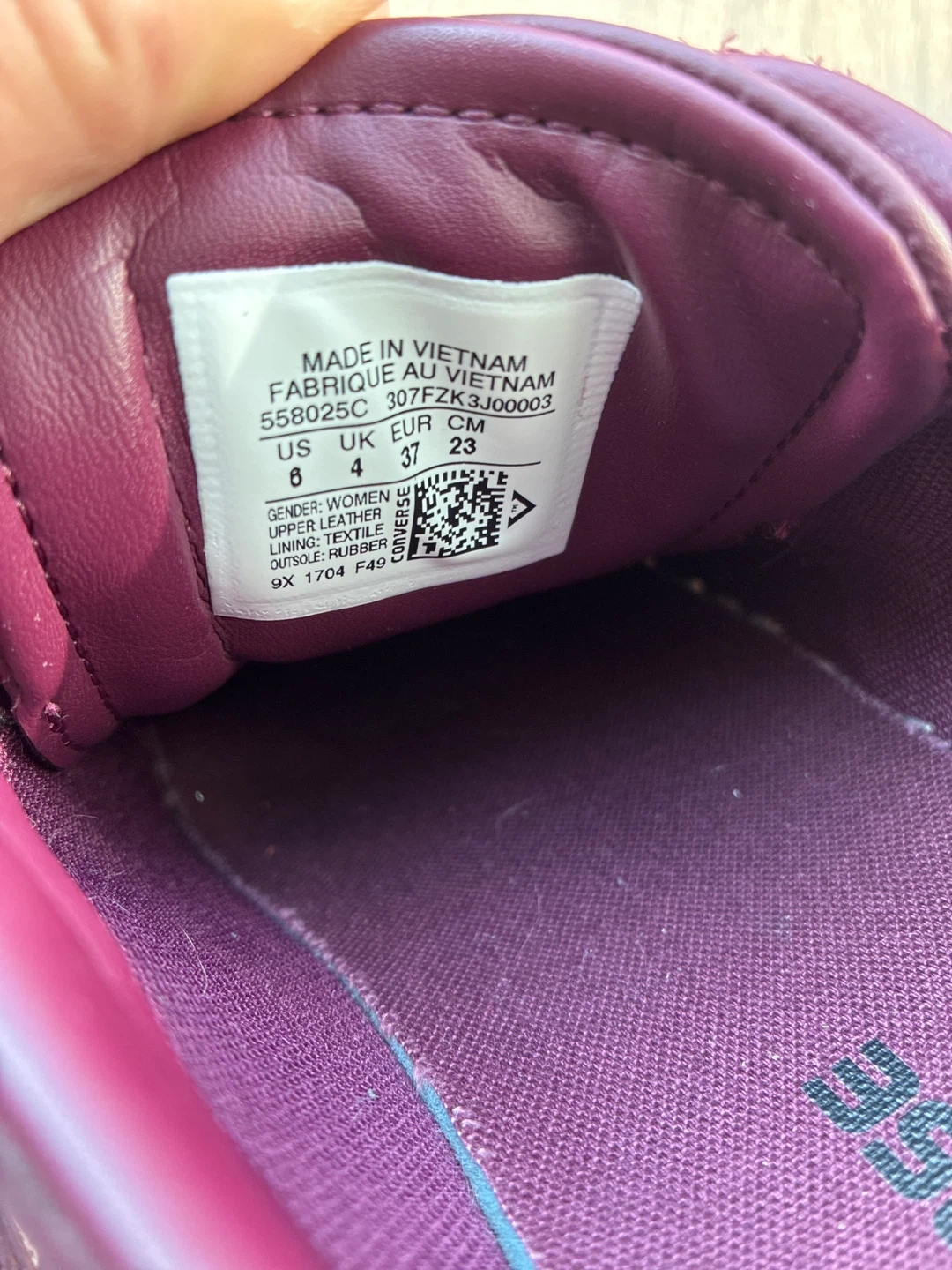 Selling a pair of Converse Pro Leather LP sneakers in a lovely burgundy colour! They are a women's size 6 US. The upper is leather, the lining is textile, and the outsole is rubber.