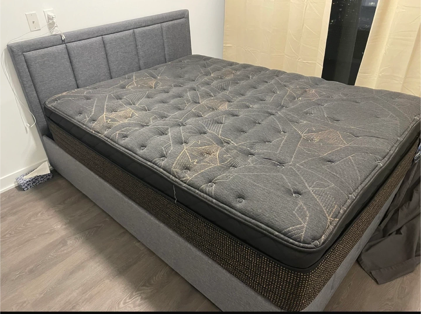 10Selling a grey upholstered bed frame with storage. Plus, the generally expensive Sealy Gleam Mattress in fantastic shape. No Pets, no Smokes, single occupant! Paid over 2k for the mattress alone. Combined: 1,300 OBO