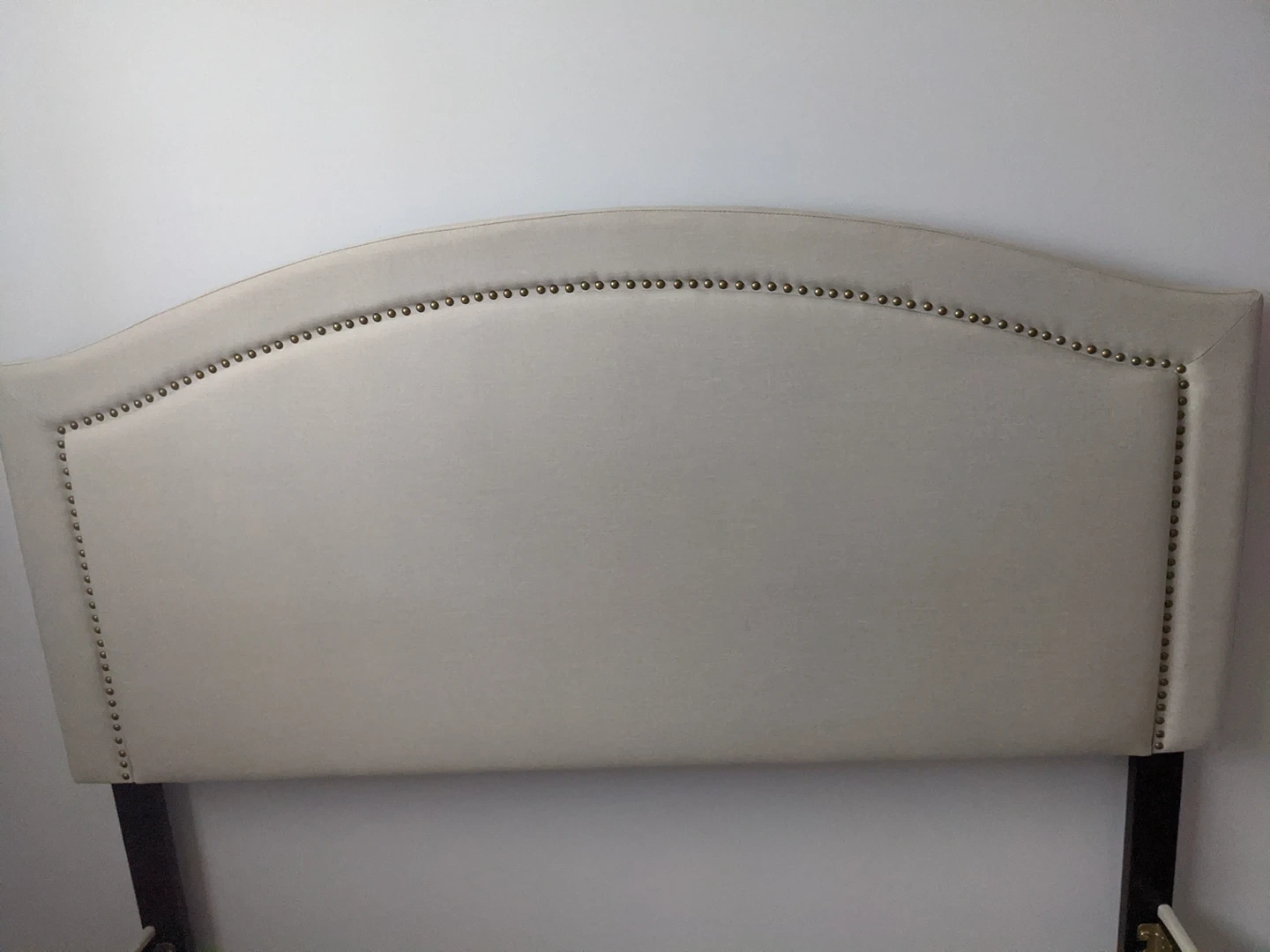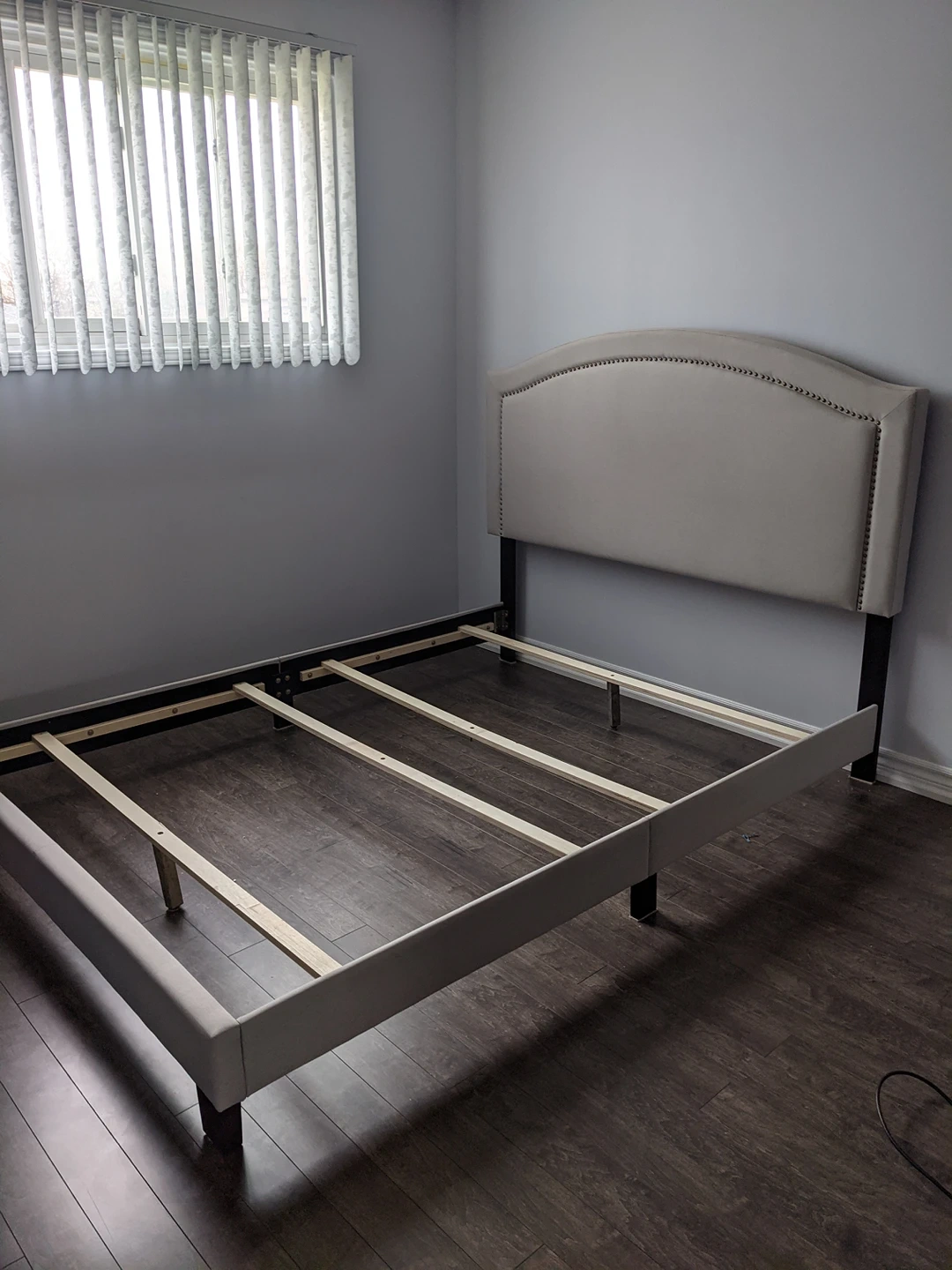 Great condition, very clean. less than a year old. No stains or markings. Comes with wooden slates, and additional wooden supports. Head Board dimensions (5'4") footboard (5'2"). All the pieces fit behind the headboard , easy to pick-up and reassemble. it says it just needs an Allen key, but I used my drill to make it easier.