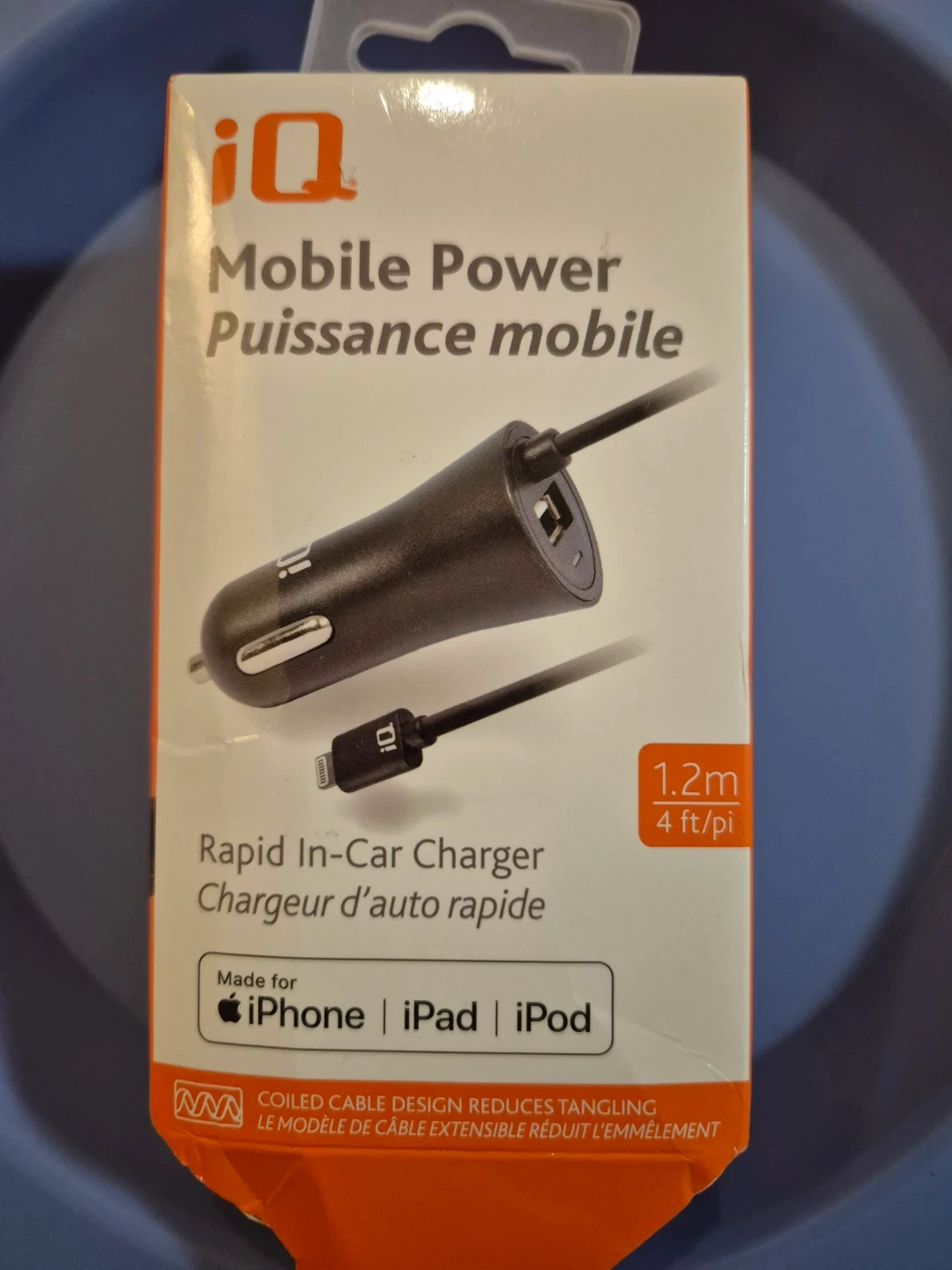 This iQ mobile power dual charger features a coiled Lightning cable for reduced tangling. It provides a total output of 3.4A for charging devices. Cable length is 1.2m (4ft).