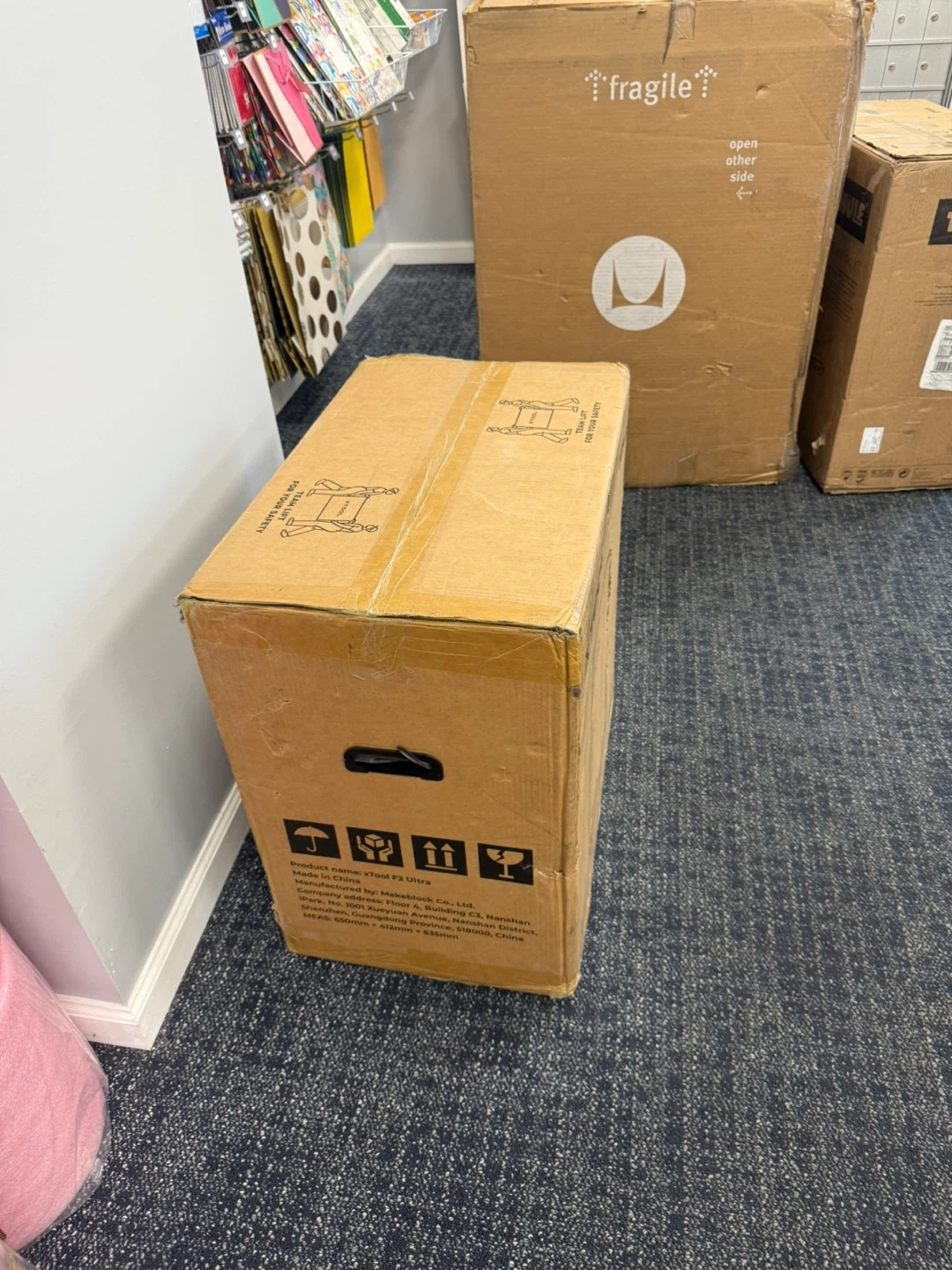 Selling an xTool F2 Ultra, still in its original box! This machine is designed to be lightweight and portable, making it easy to move around your workspace. It measures 512mm x 530mm x 635mm
