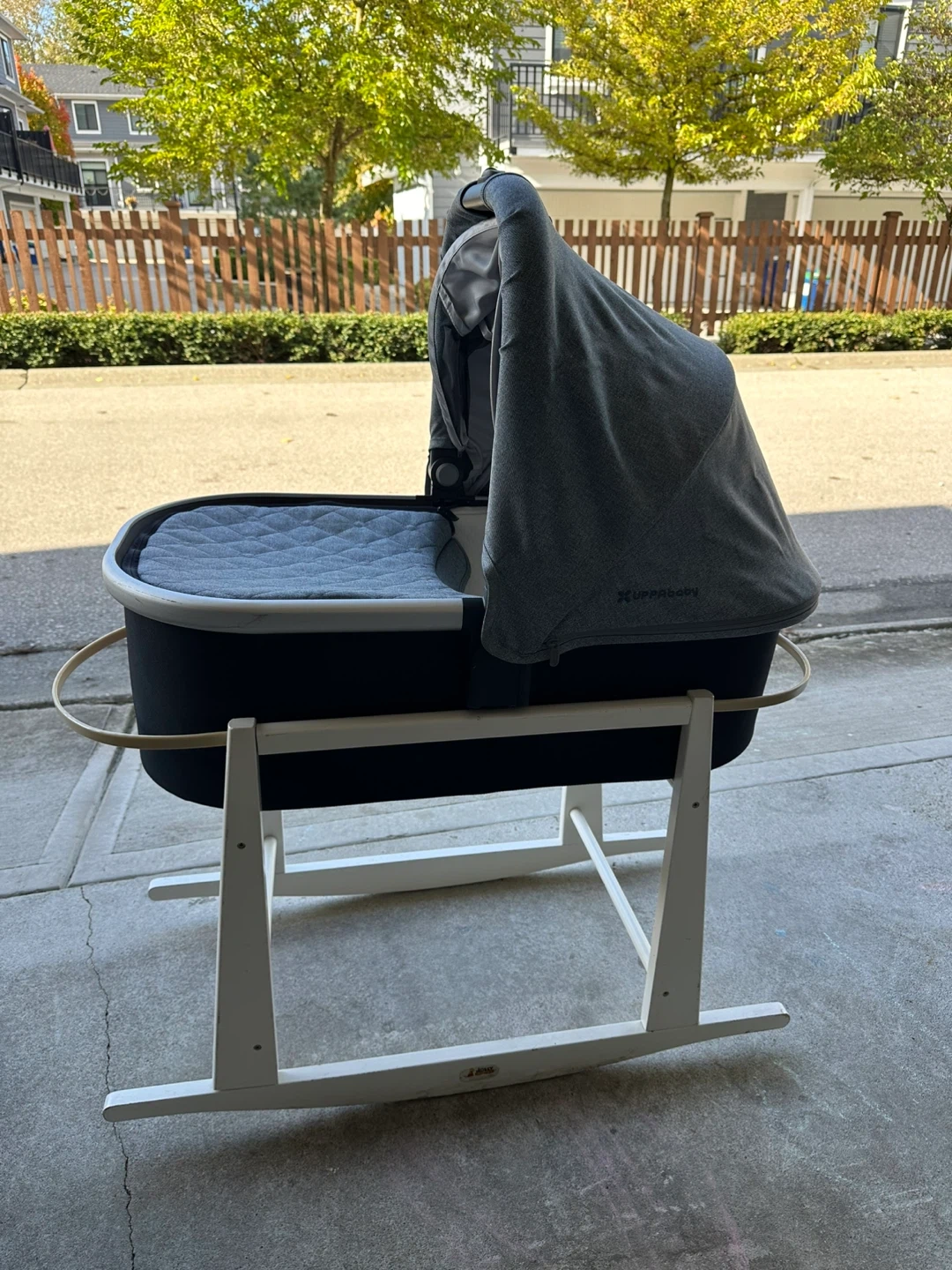 84Selling a gently used UPPAbaby bassinet and stand! It's in great shape and ready for a new little one. The bassinet features a comfortable mattress and a breathable canopy. The stand is sturdy and provides a safe and secure place for the bassinet that will rock your baby to sleep. Perfect for newborns!