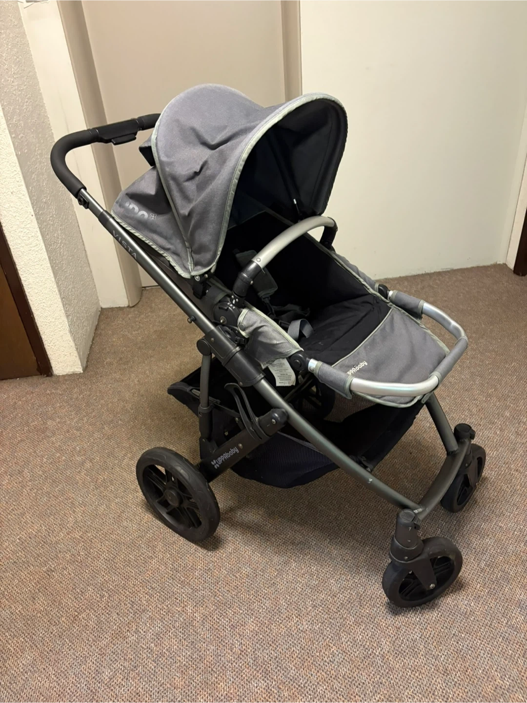 32Selling a used UPPAbaby VISTA stroller in a grey and black colour scheme. It's in good condition and ready for a new family! Perfect for navigating Canadian streets and trails.