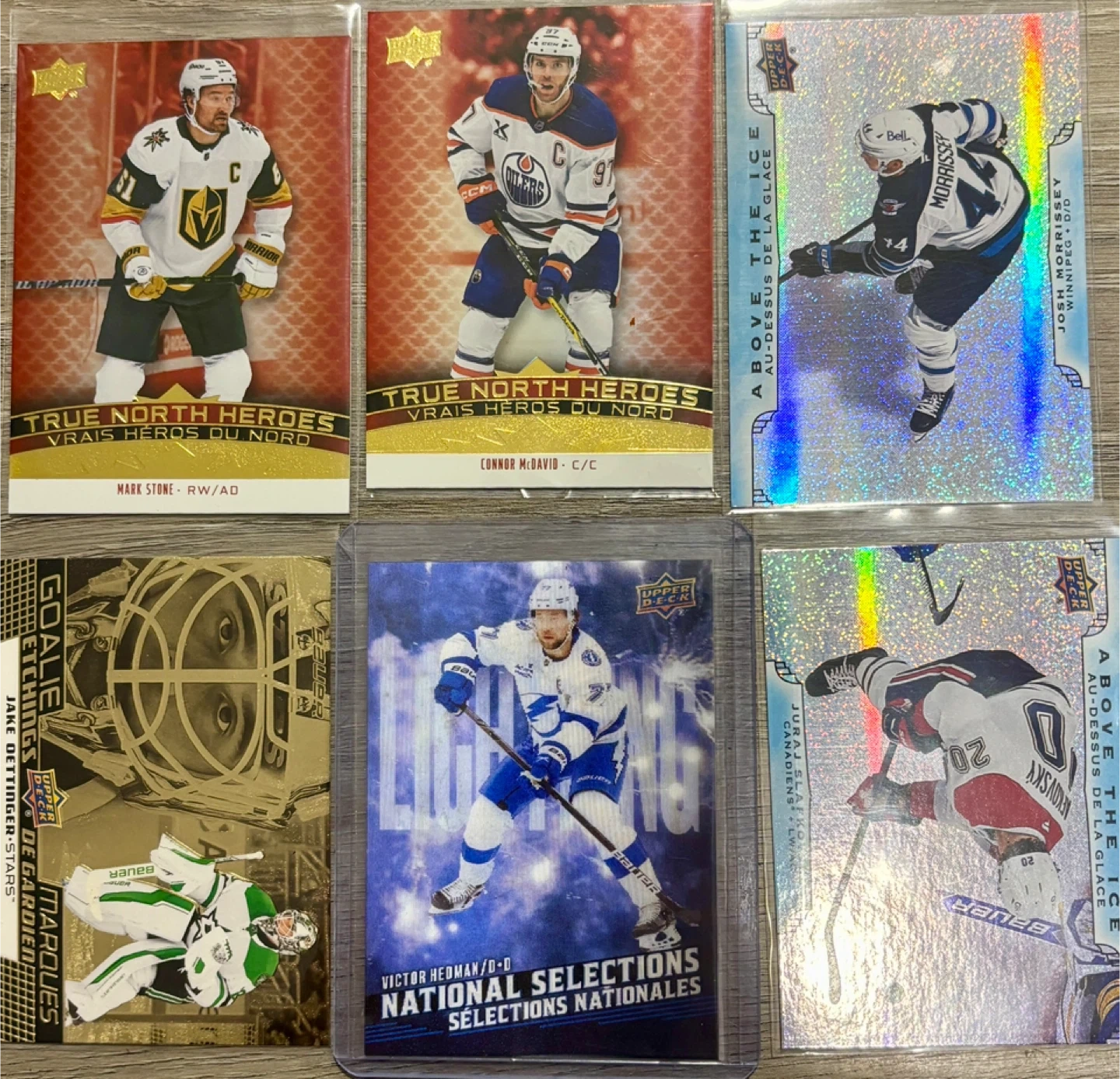 Selling a collection of Upper Deck hockey cards! There are some really cool ones in here, including True North Heroes and National Selections cards. Perfect for any hockey fan or card collector!