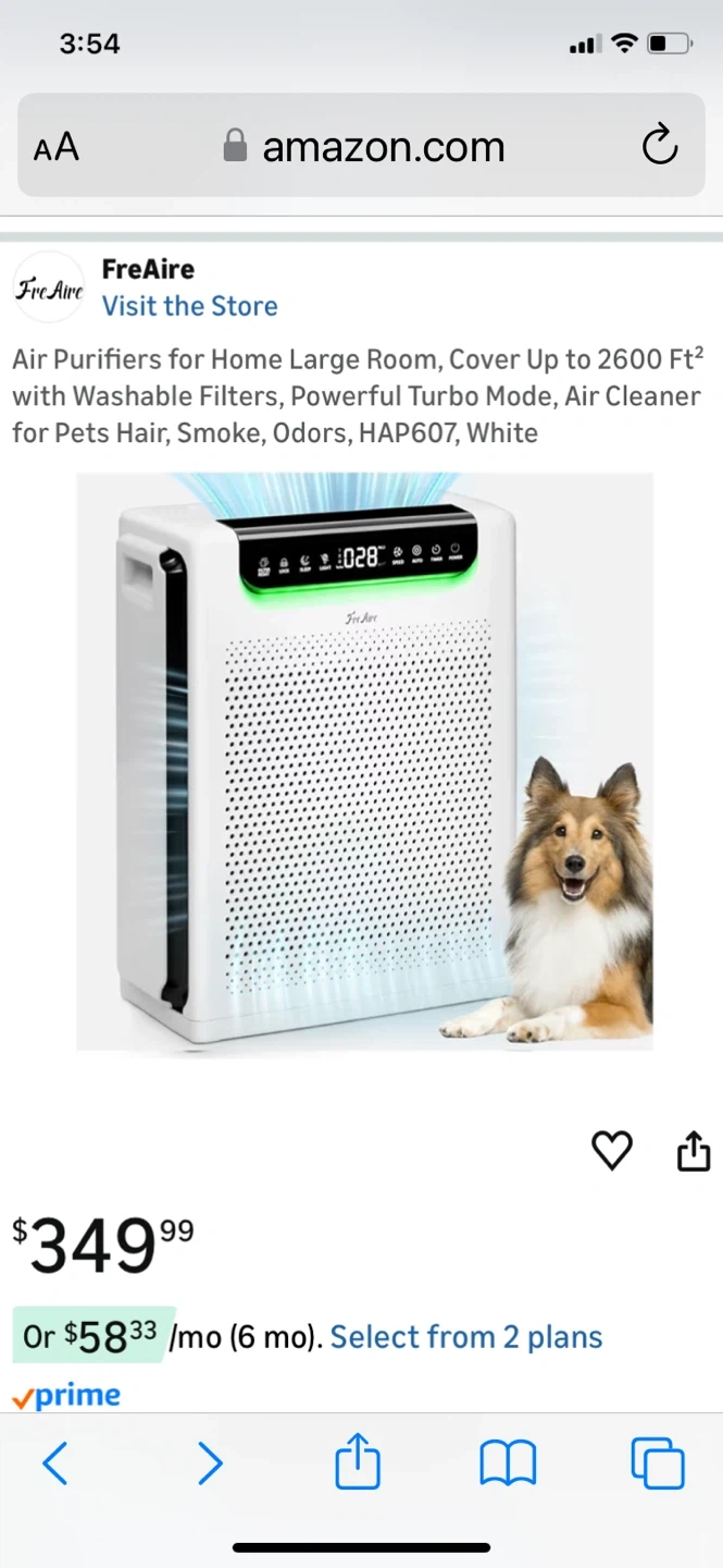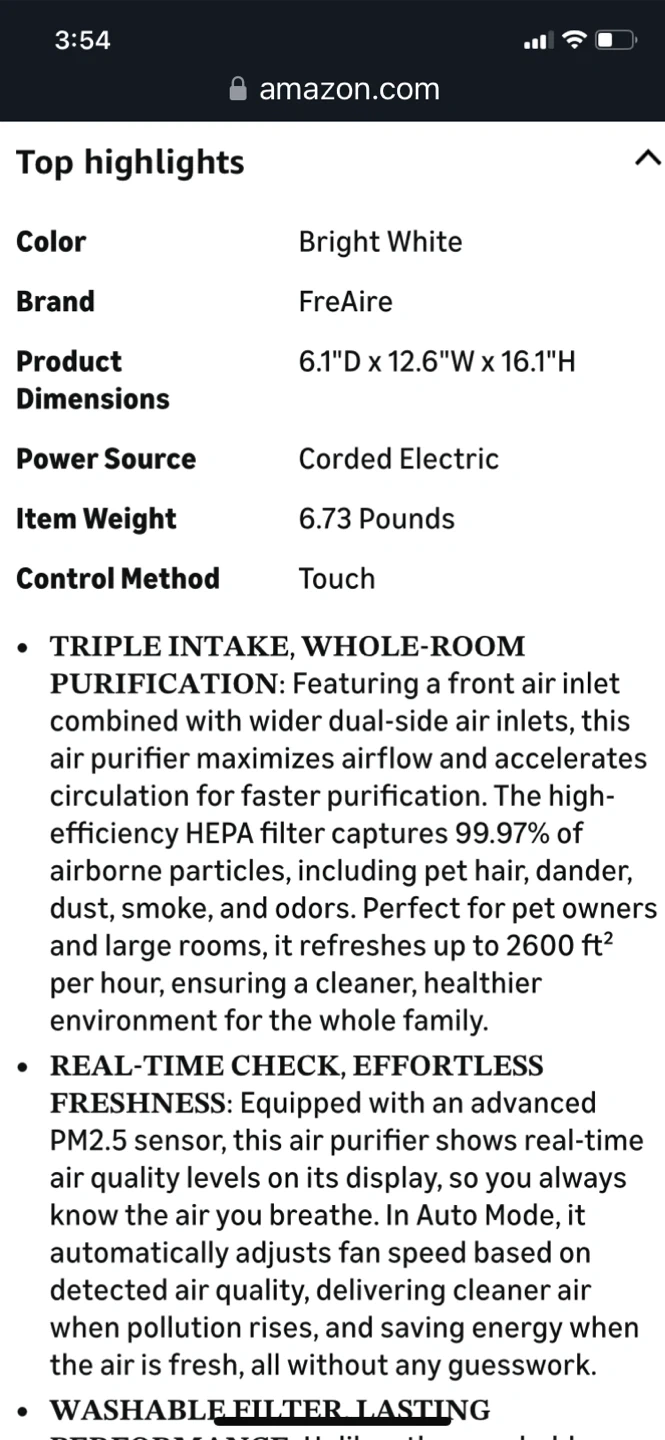 FreAire Air Purifier with washable filter -up to 2600sqft