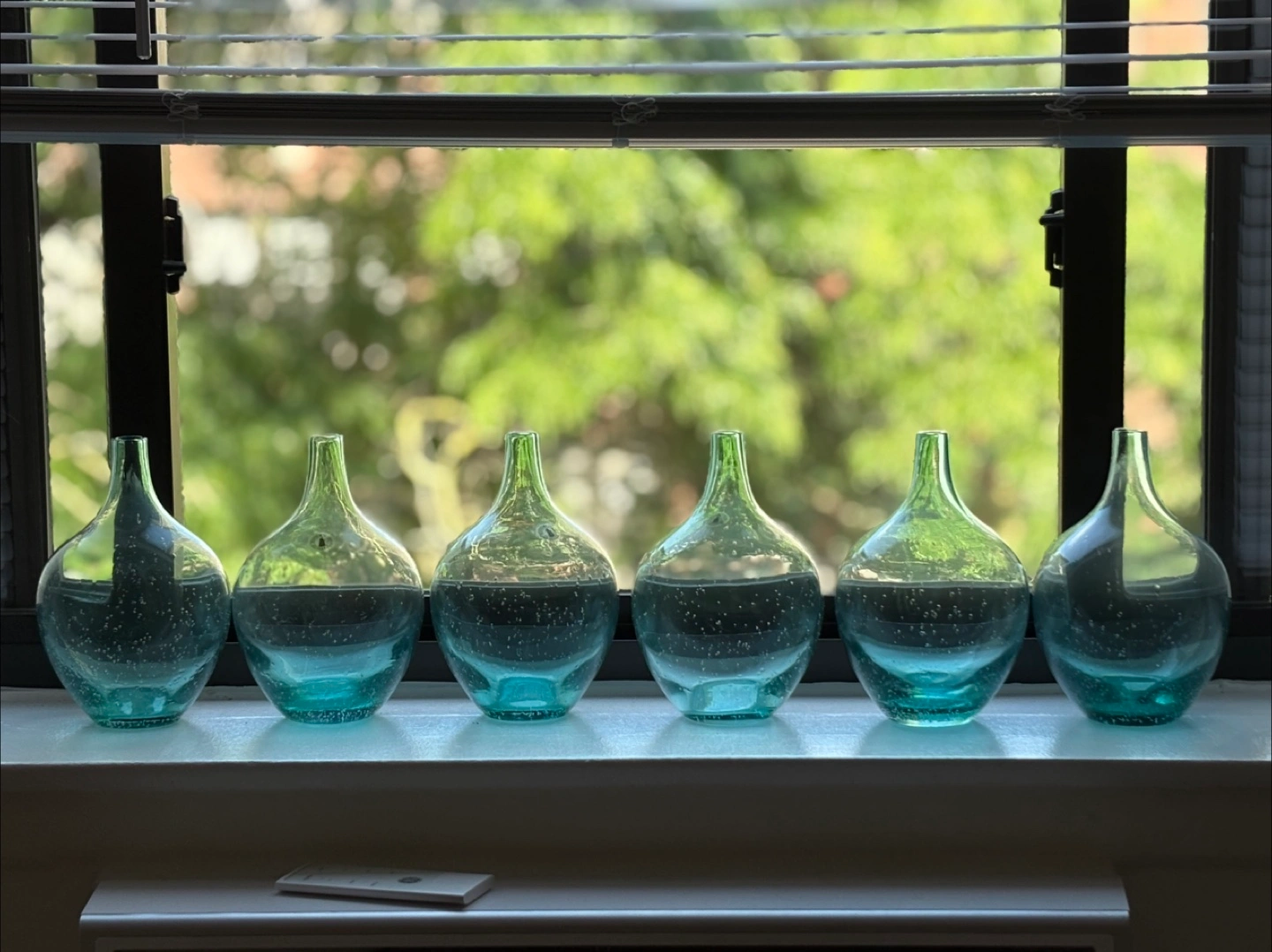 I'm selling these decorative glass bottles. Set of 6. Vintage treasures from IKEA. They have a unique design and would look great in any home. They are in good condition and ready for a new home!