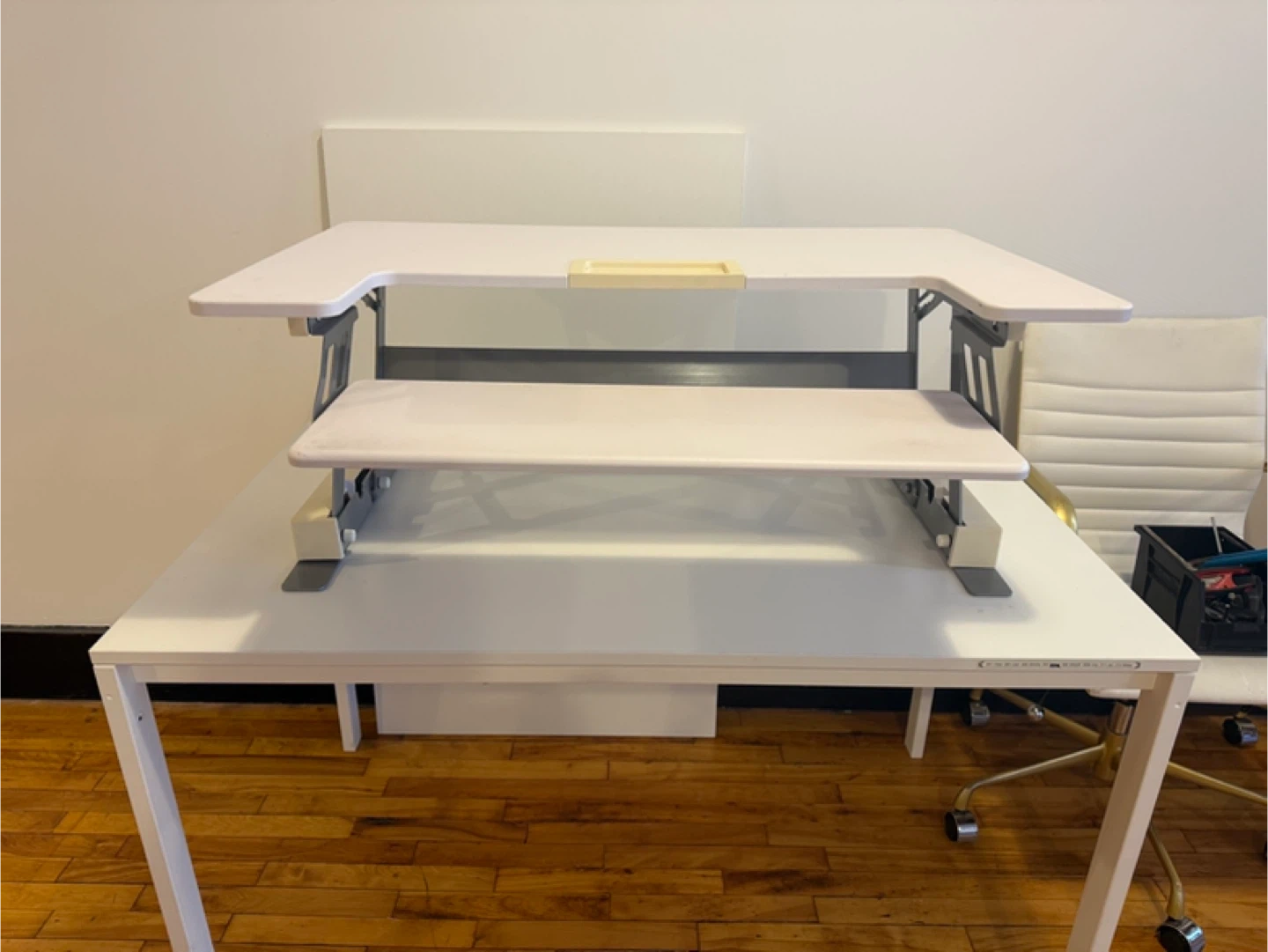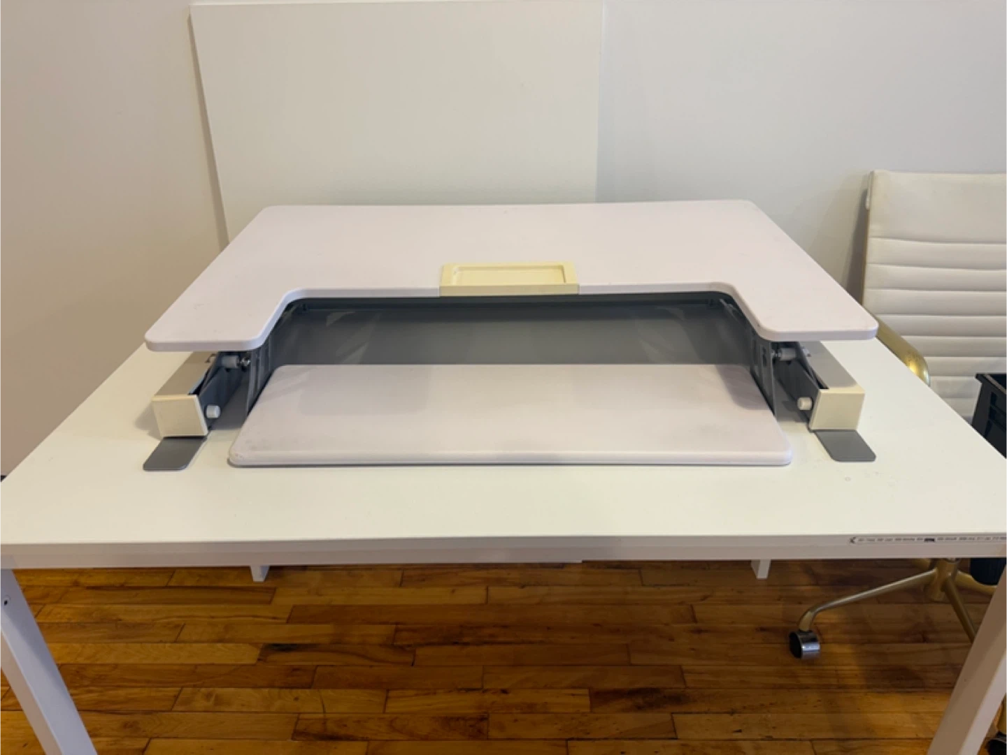 This VIVO standing desk converter allows you to easily switch between sitting and standing positions. It features a spacious top surface and a lower keyboard tray. The unit's adjustable height mechanism is smooth and reliable.