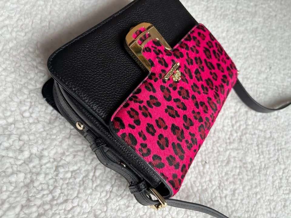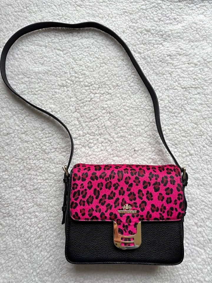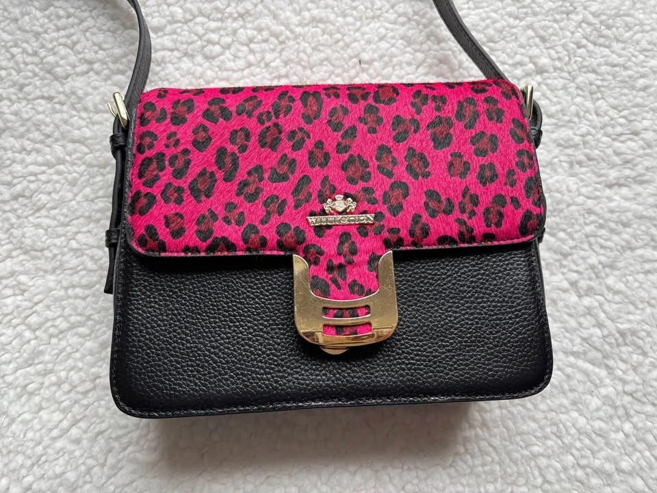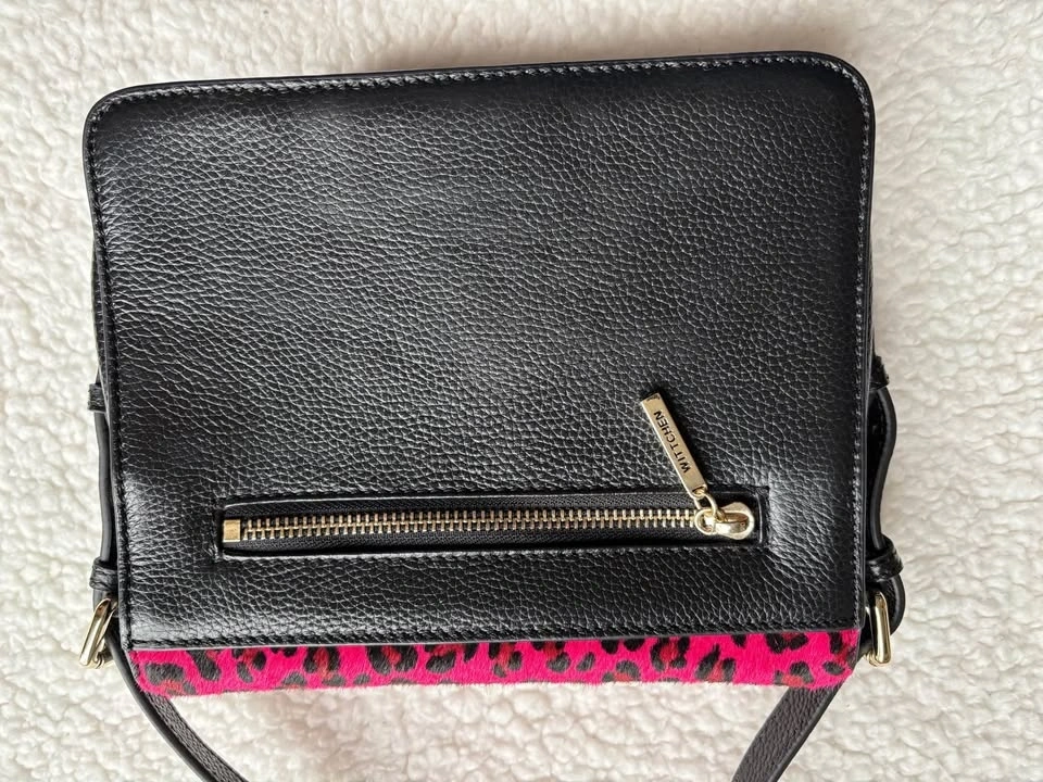 Designer Wittchen Black Genuine Leather Bag w/ Pink Leopard Prin