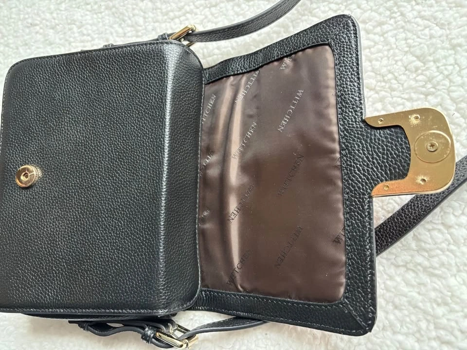 A stylish genuine leather handbag from the brand Wittchen, it can be worn as a shoulder or crossbody bag. The strap is 118cm long and can be fully detached, allowing the bag to be worn as a clutch. Measurements: Width: 21 cm, Height: 17 cm, Depth: 6 cm.