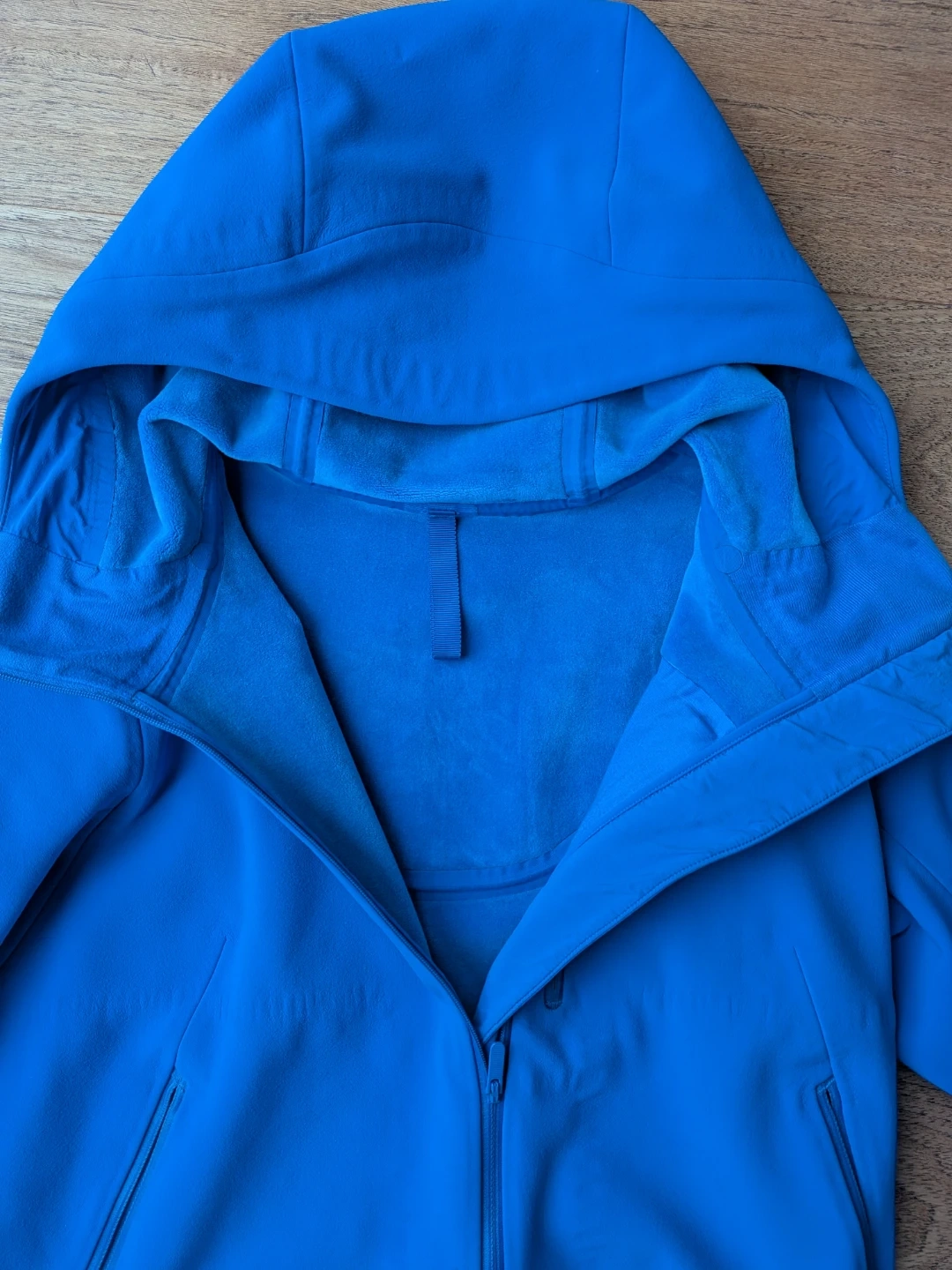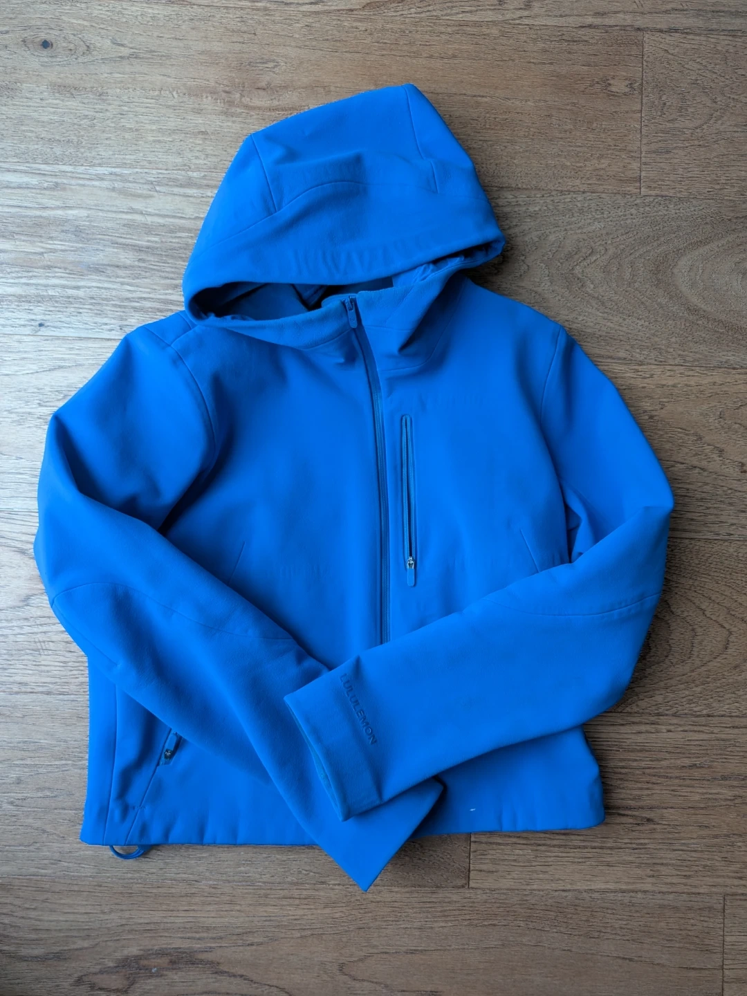 Lululemon hooded softshell jacket in a vibrant blue colour.