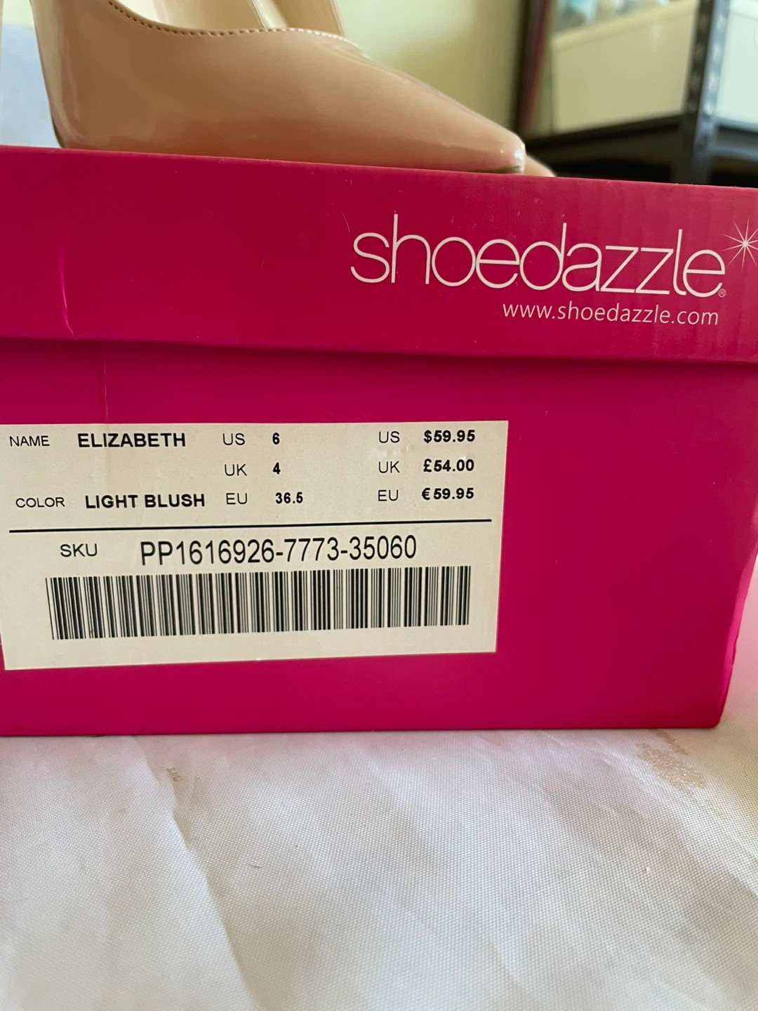 These ShoeDazzle Elizabeth heels are a lovely light blush colour. They're a US size 6. Includes the original box! They have never been worn.