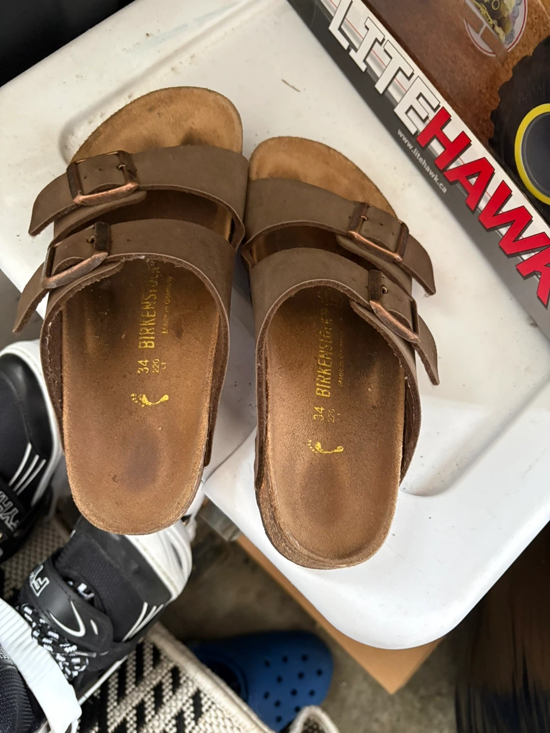 Birkenstock Arizona sandals in brown. Size 34. Made in Germany. Cork footbed.