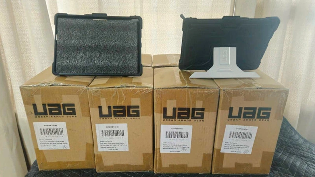 12This URBAN ARMOR GEAR (UAG) case is designed for a Microsoft Surface Go, offering rugged protection. It's in New condition, ready to safeguard your device. The case features a built-in kickstand for convenient viewing angles and provides excellent shock absorption. Key features include: * Rugged construction for drop protection * Integrated kickstand for hands-free use * Precise cutouts for full access to ports and buttons * Compatible with Microsoft Surface Go 4, 3, 2, Surface Go This case is in Brand New Condition $35/Case Quantity: 72 This case is ready to take your Surface Go on any adventure! If the ad is up, it's available!