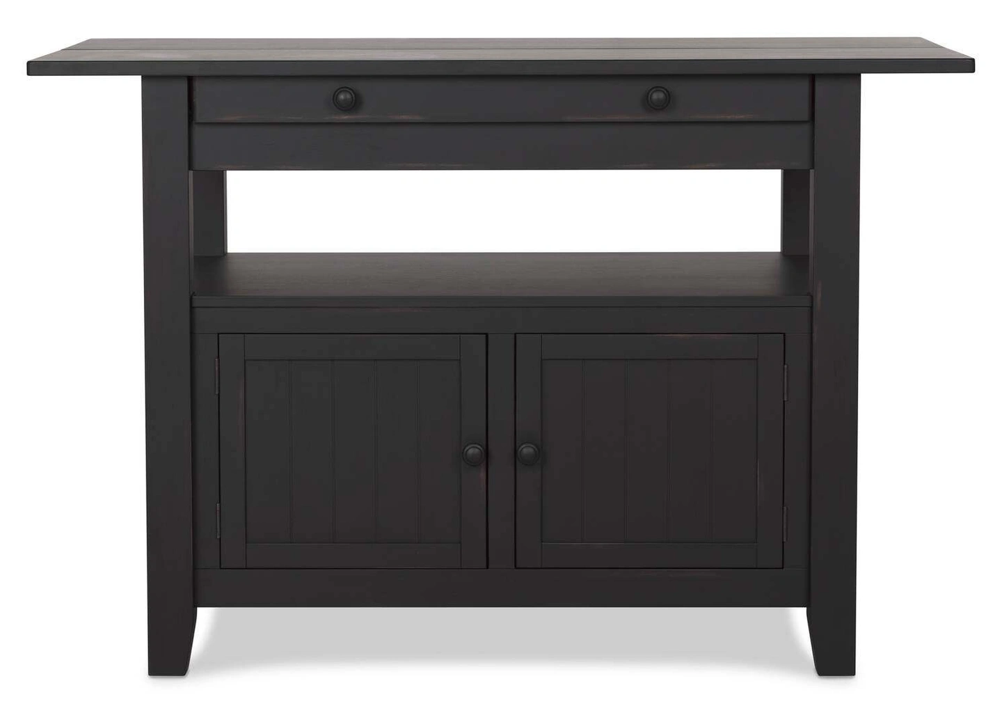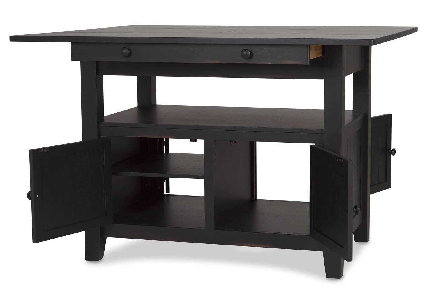 5Extendable table design with self-storing butterfly leaf extension. - Seats up to 8 - Pass-through storage space in the base of the table with fixed shelves - Extension width: 18" - Table overhang at end: 6.5" non-extended, 10" extended - Storage space shelf dimensions (2): 18.5"W x 22"D x 7"H