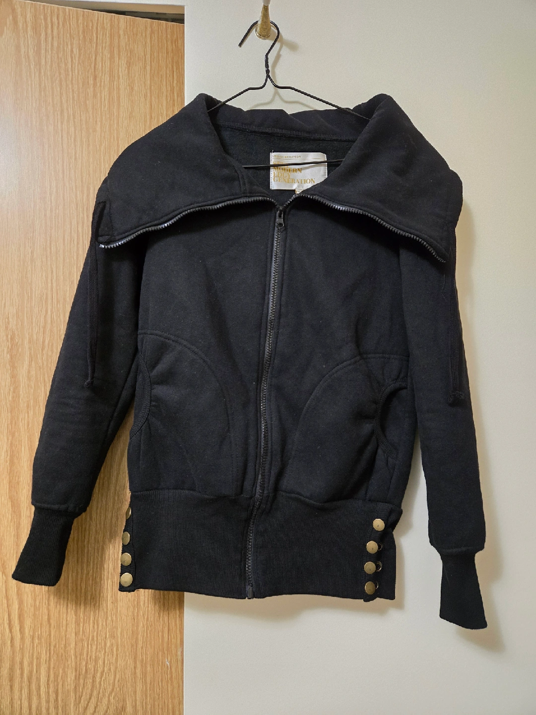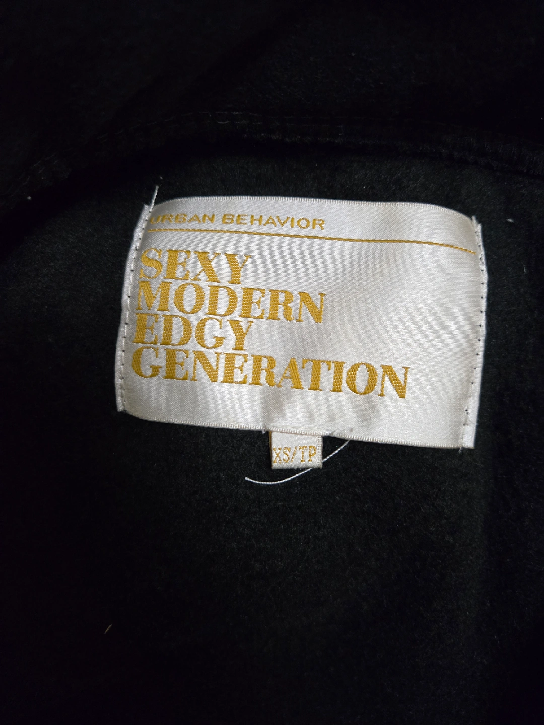 58Selling a stylish black jacket from Urban Behavior! It's a size XS and features a unique collar and button detailing. Perfect for adding a bit of edge to any outfit!