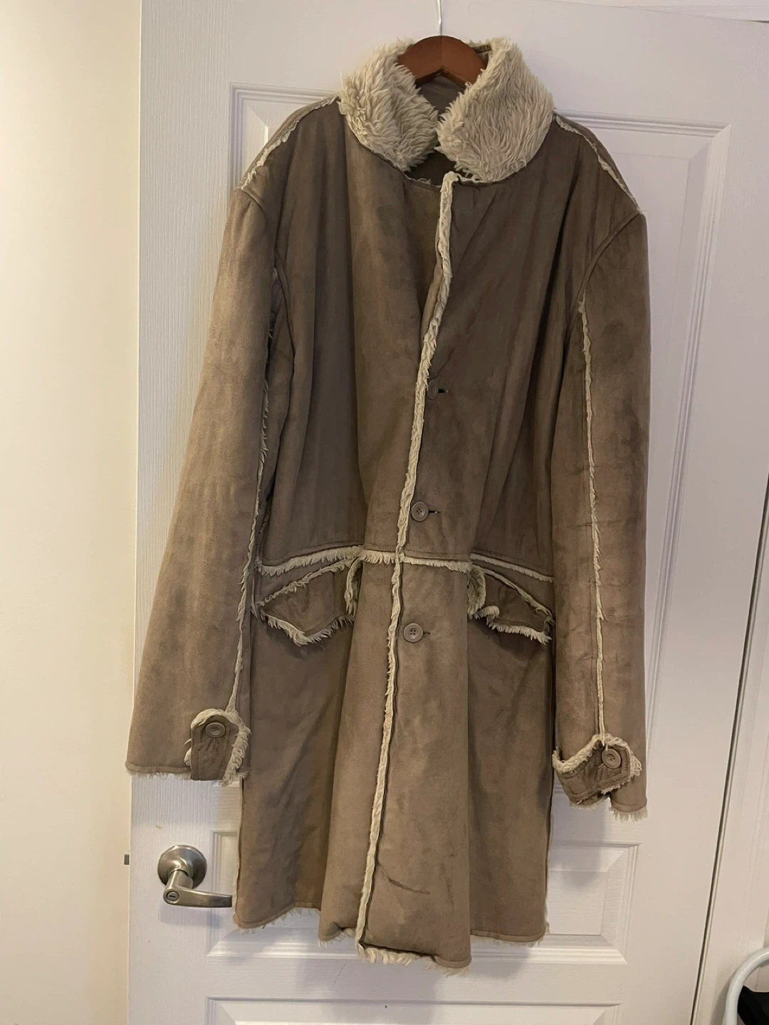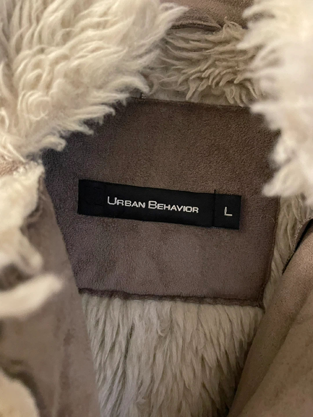 Cozy up with this Urban Behavior faux shearling coat! It's a size L and features a soft, warm lining. The coat is a stylish grey colour, perfect for those chilly days and nights!