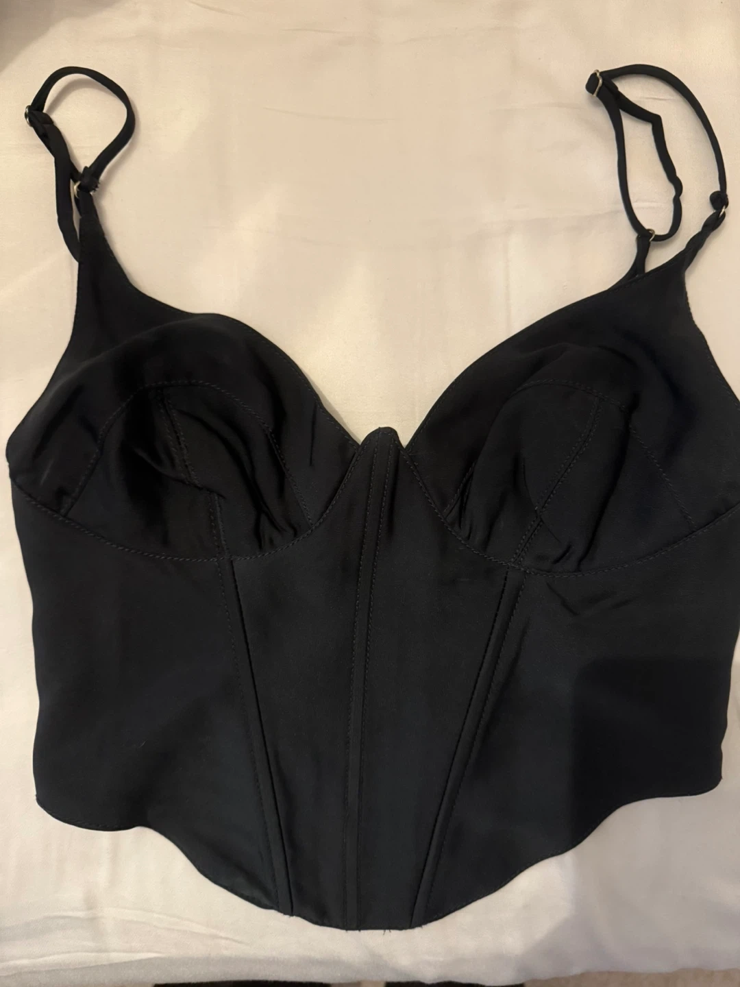 47Selling a cute Urban Outfitters corset top in black! It's a size XS and in great condition. Perfect for a night out or dressing up any outfit