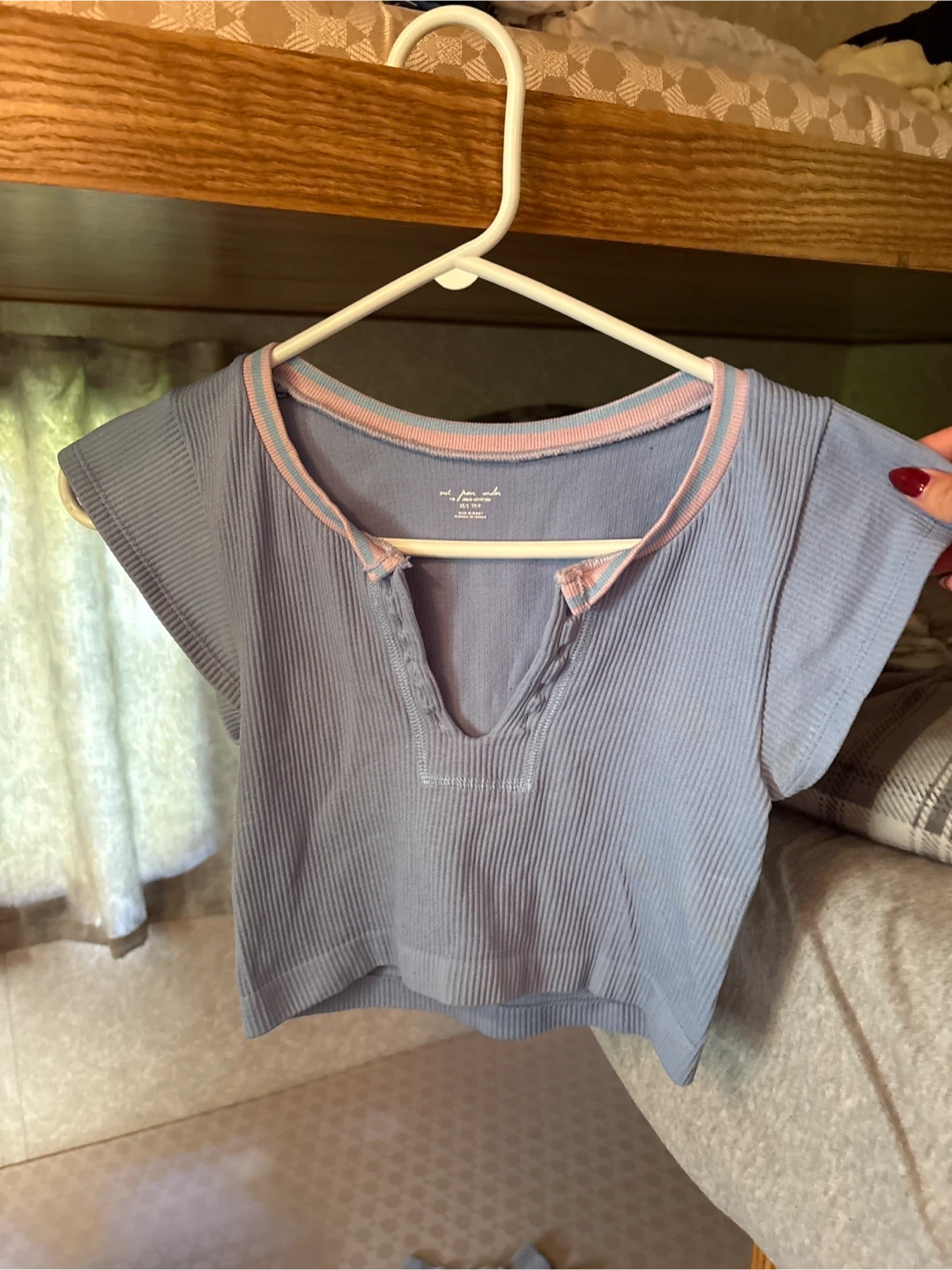 Selling a cute Urban Outfitters ribbed top in a lovely blue colour! It's a size XS/TP and in great condition. Perfect for a casual day out or layering with other pieces!