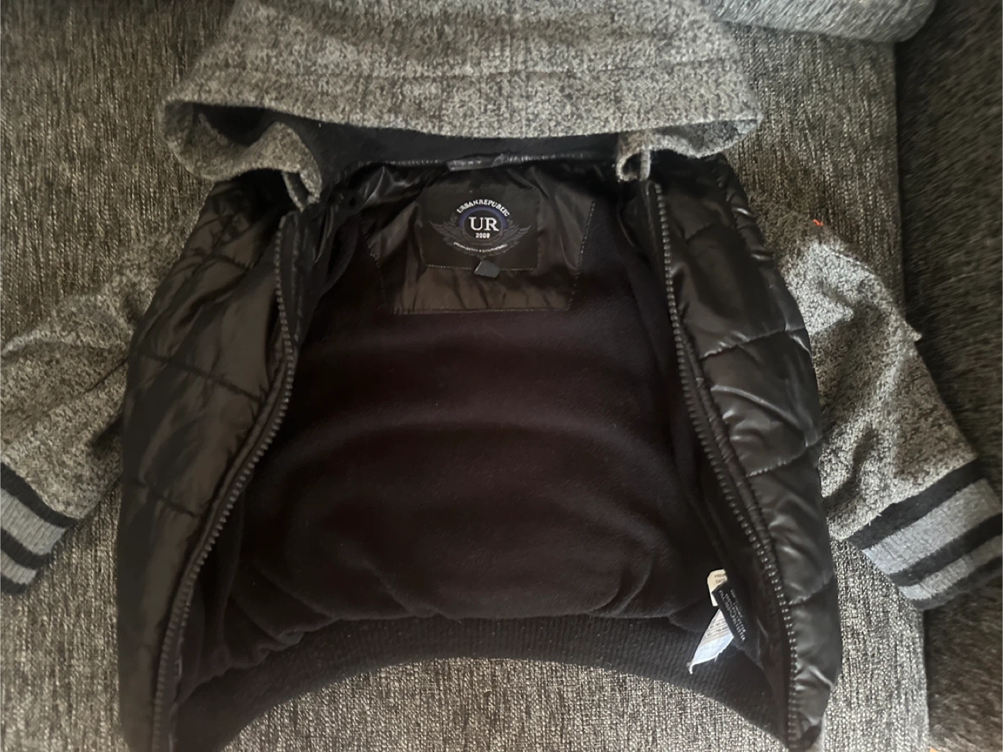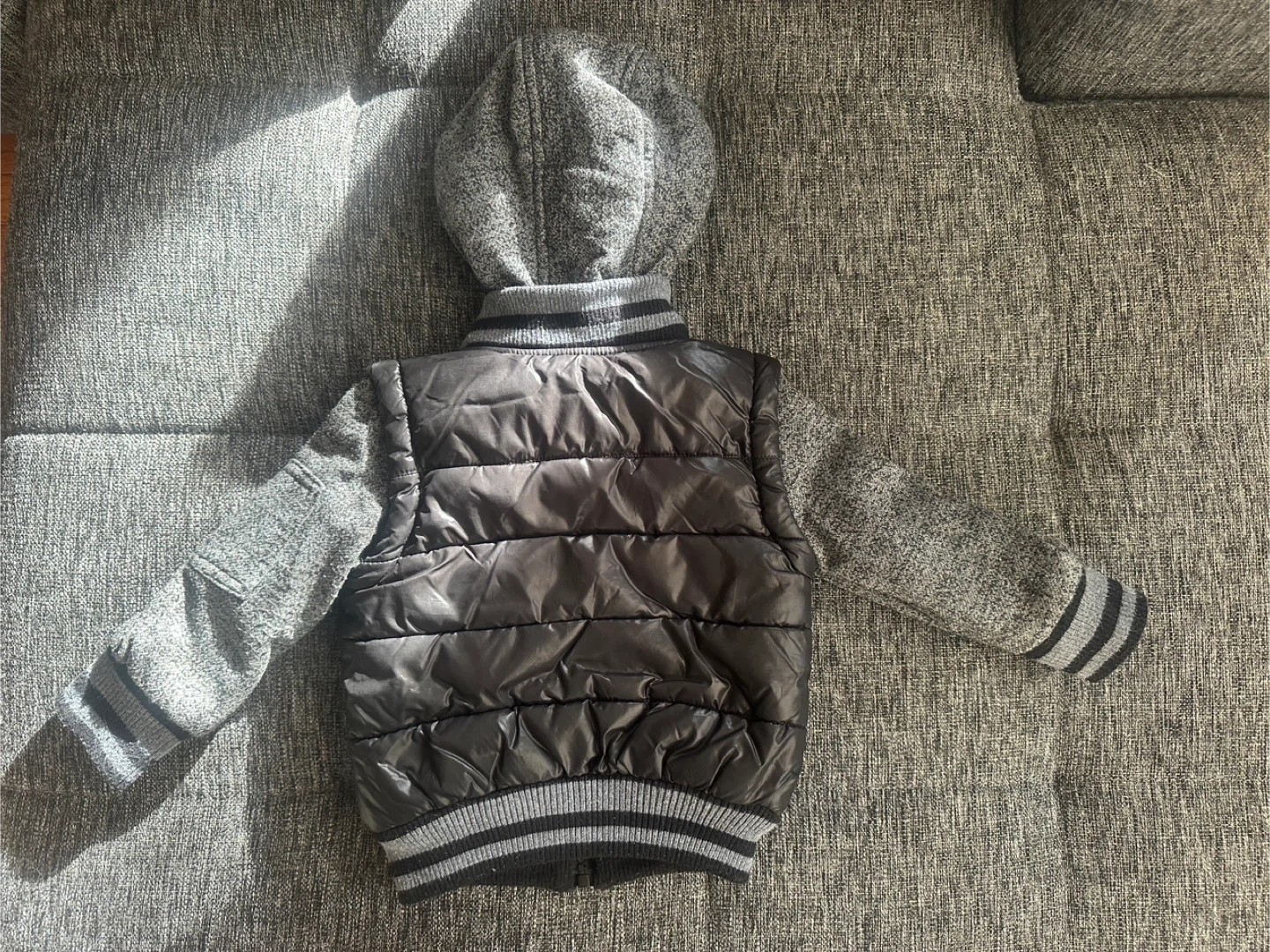 Keep your little one cozy with this Urban Republic hooded jacket, size 24 months! The jacket is in good condition, perfect for keeping your baby stylish and warm during cooler weather. It features a black puffer vest design with grey knit sleeves and hood, making it a versatile addition to their wardrobe. Here are some details: * Brand: Urban Republic * Size: 24 Months * Colour: Black/Grey * Style: Hooded Puffer Jacket See my other listings for more kids' winter clothes, thank you.
