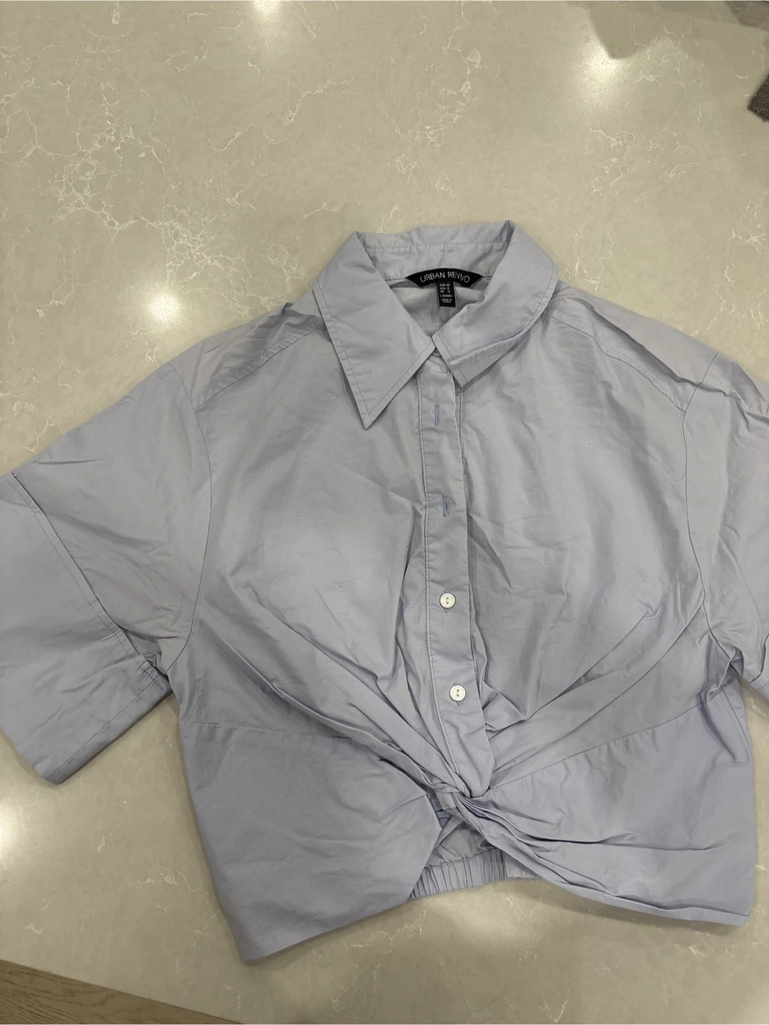 643Selling a cute light blue crop top from Urban Revivo! It's a size L and has a stylish knot detail at the front. Perfect for summer!