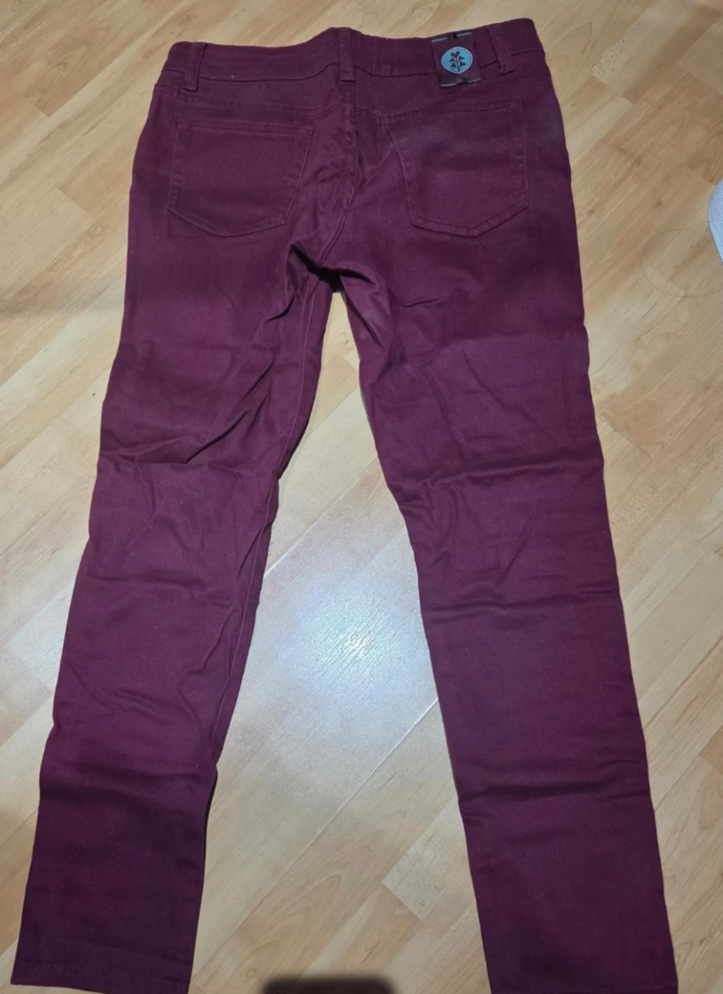 Velvet Heart jeans in a rich burgundy colour. These jeans are made with 98% cotton and 2% spandex for a comfortable stretch fit. They're a size 28.