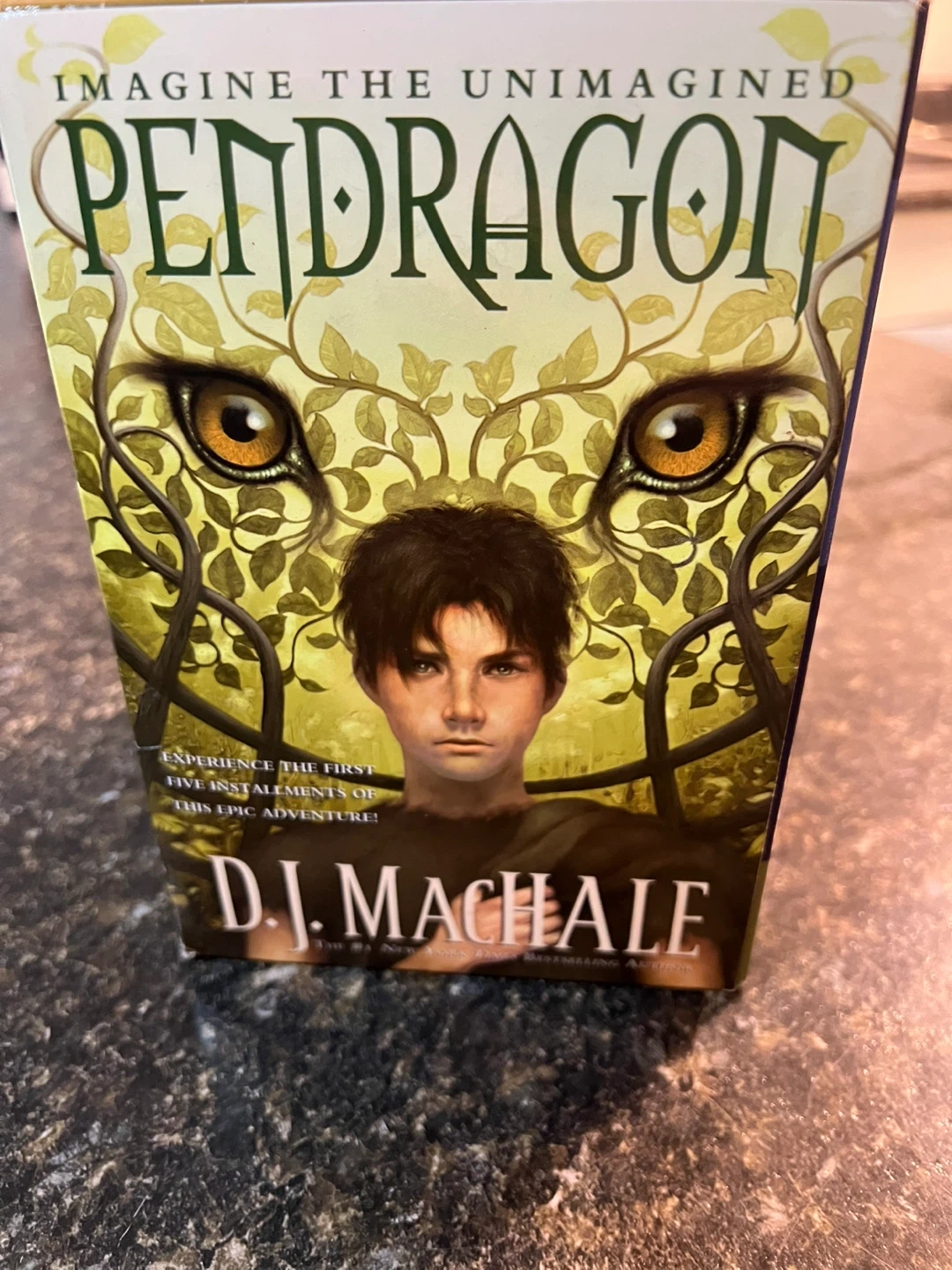 This is the Pendragon series box set by D.J. MacHale. It includes the first five installments of the epic adventure series. The books are in a slipcase.