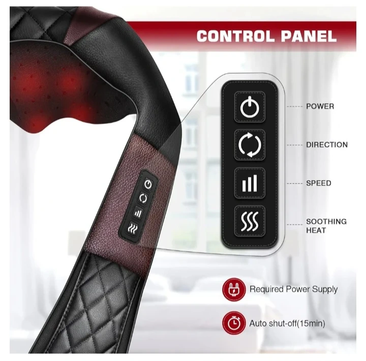 This WOOW shiatsu neck massager features heat and multiple speed settings. It has a 15-minute auto shut-off function. Multiple massage directions are available. I Didn't used it