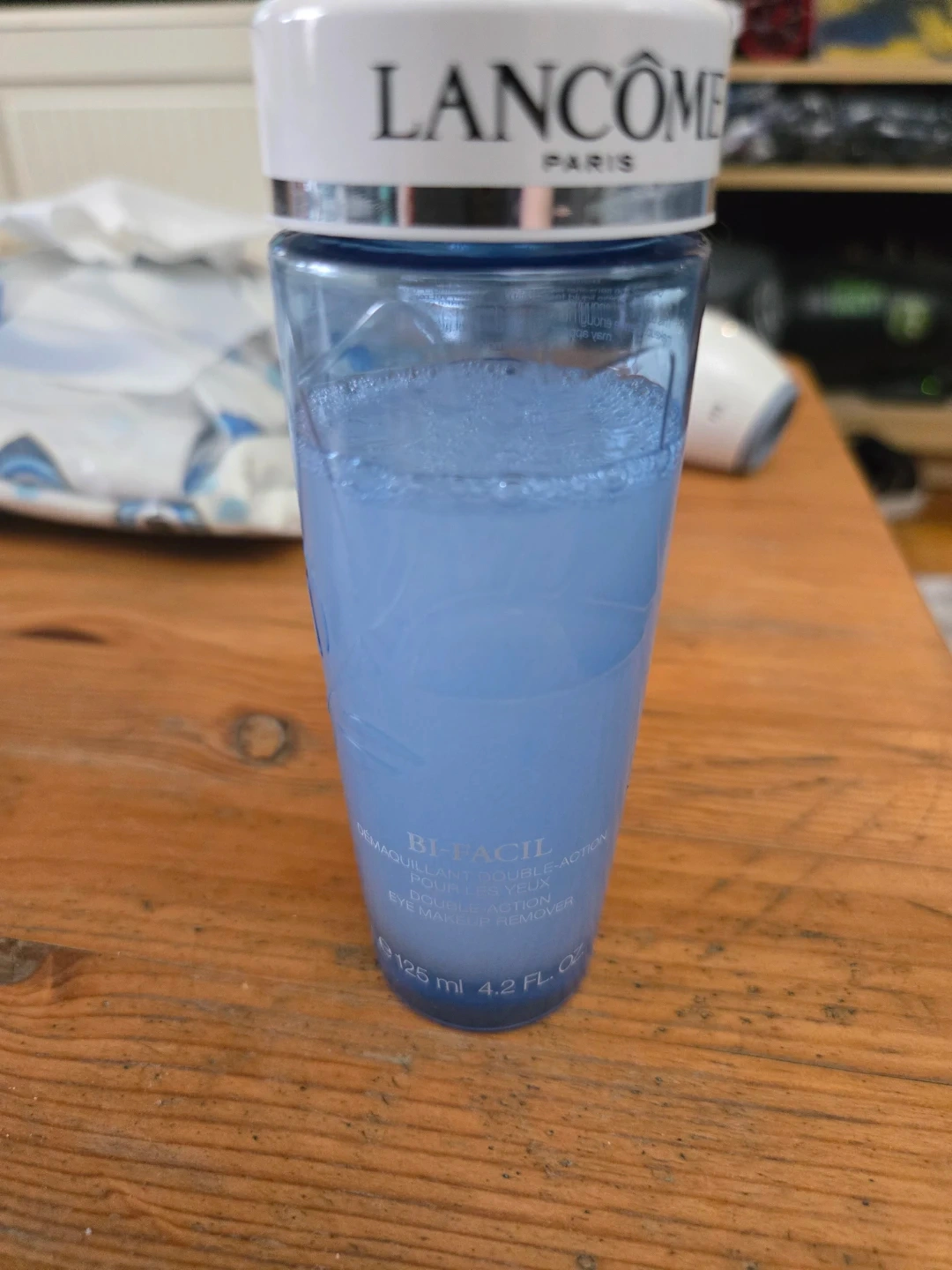Lancôme Bi-Facil Double-Action Eye Makeup Remover. This gentle formula effectively removes all types of eye makeup, even waterproof. 125 ml bottle.