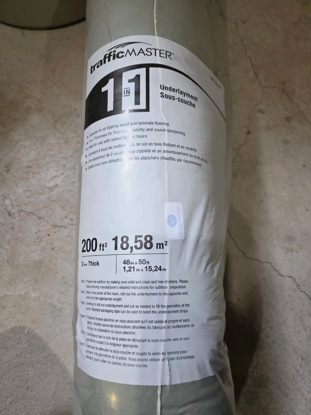 This is TrafficMASTER 1-IN underlayment, offering 2mm thickness for improved stability and sound dampening. It's suitable for all floating wood and laminate flooring. This underlayment is also ideal for use with radiant heat floors.