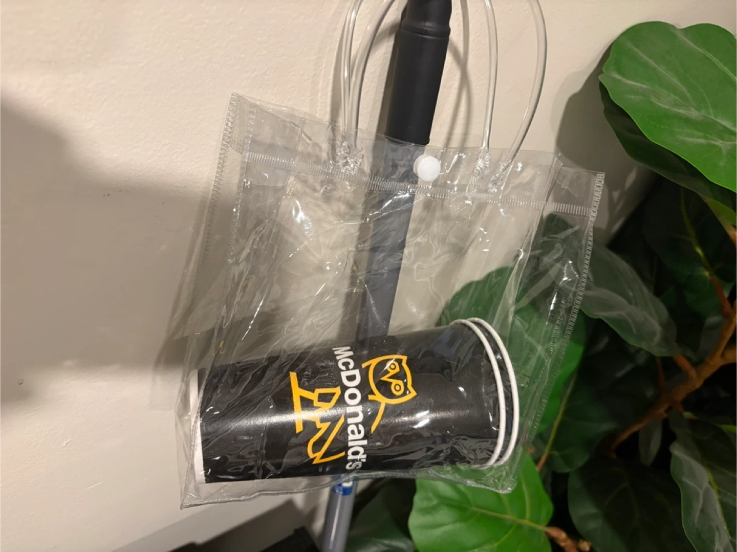 Two black paper cups featuring the McDonald's and OVO Owl collaboration logo. These cups are a cool collectible item for fans of both brands. Perfect for display or for enjoying a beverage!