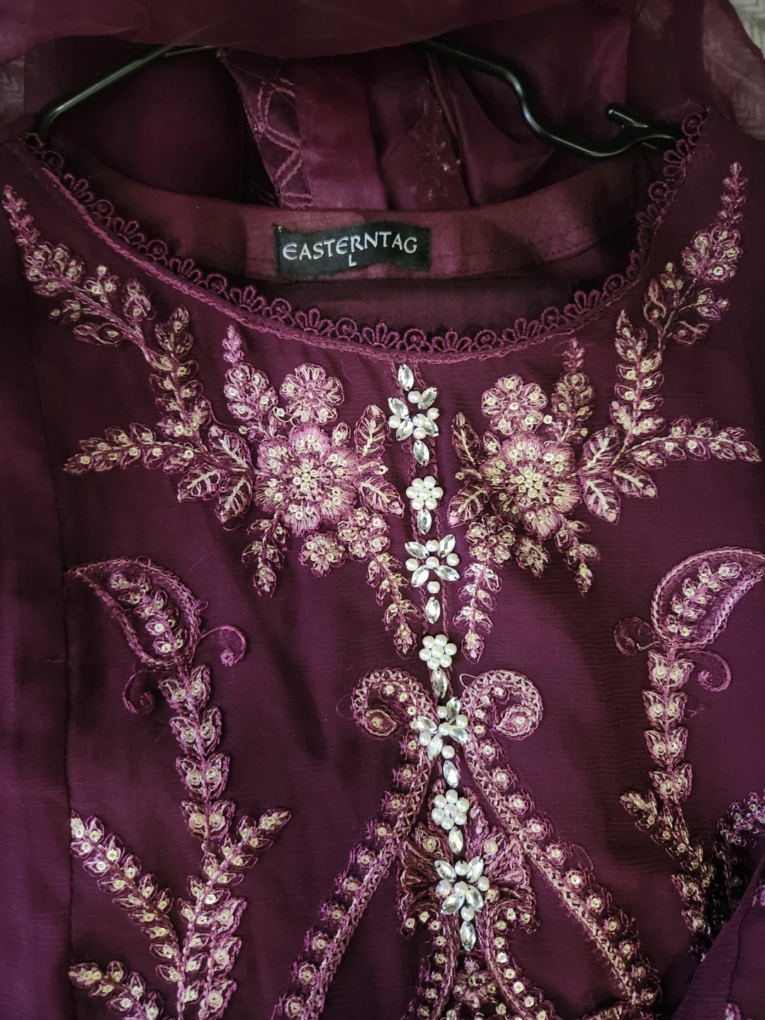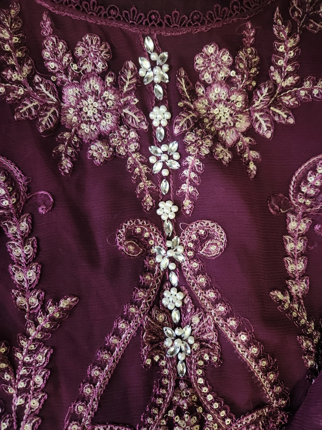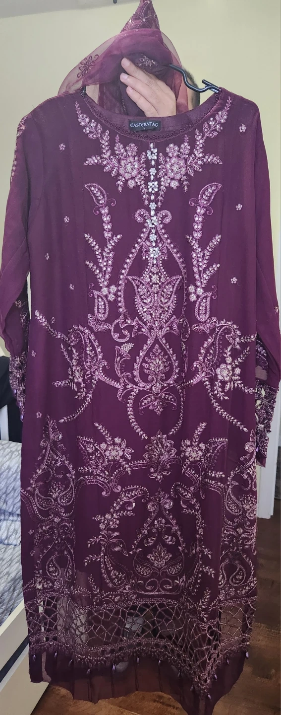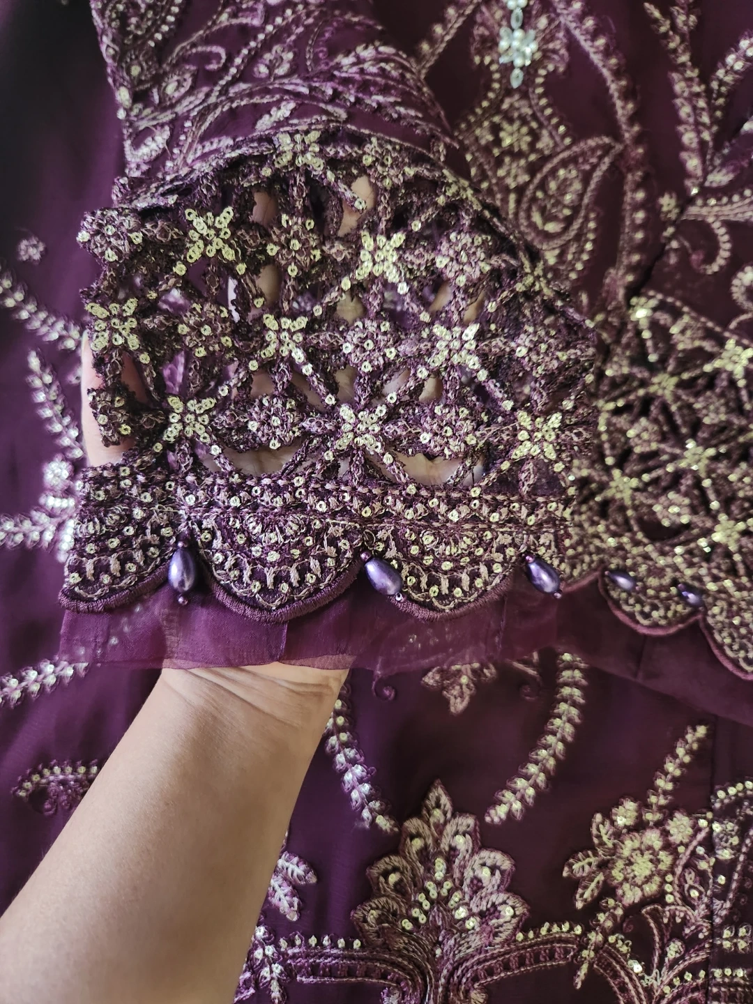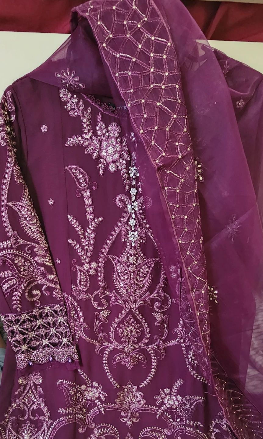 Beautiful 3 pcs suit with cutwork , pearls , sequences work and embroidered.