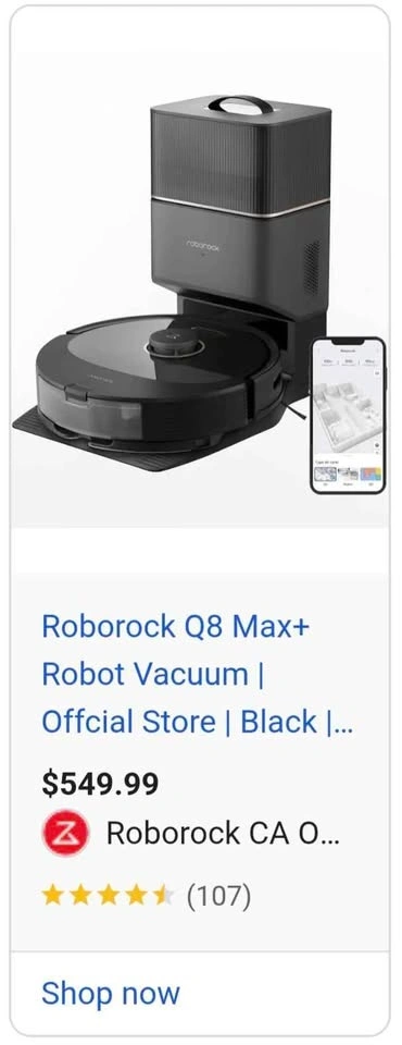 Brand new Roborock Q8 Max+ Robot Vacuum (Black)