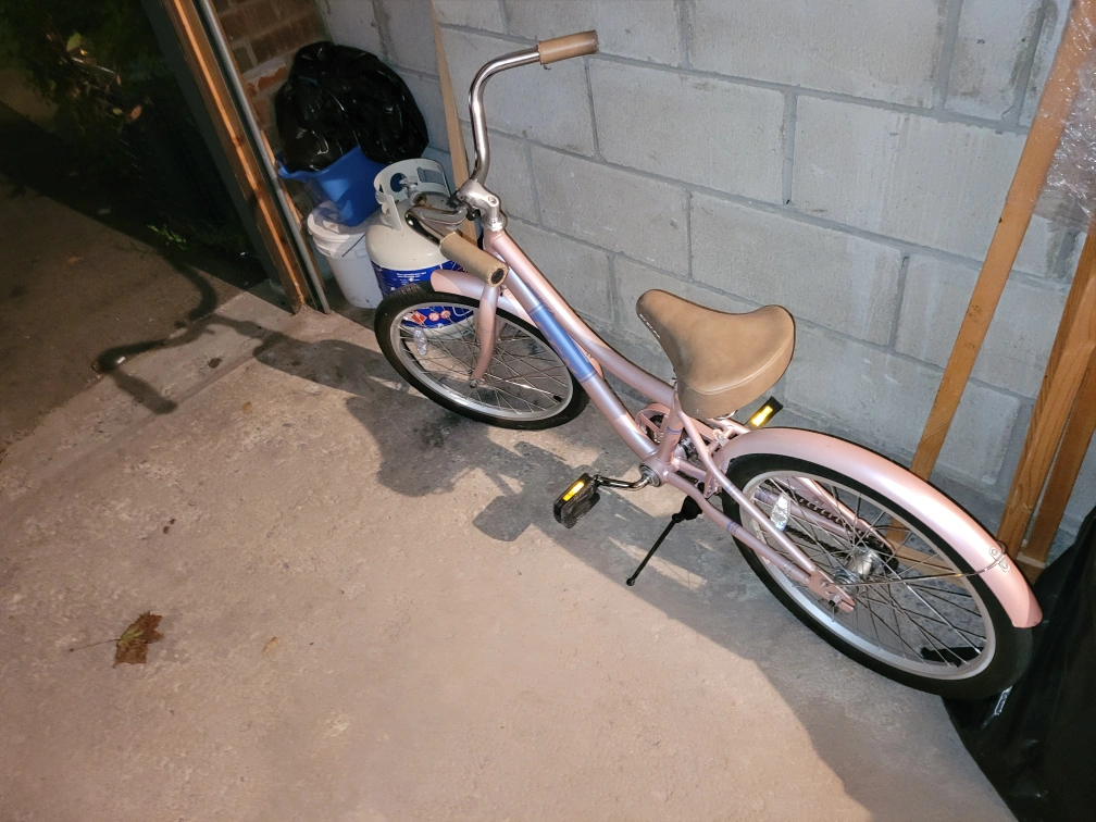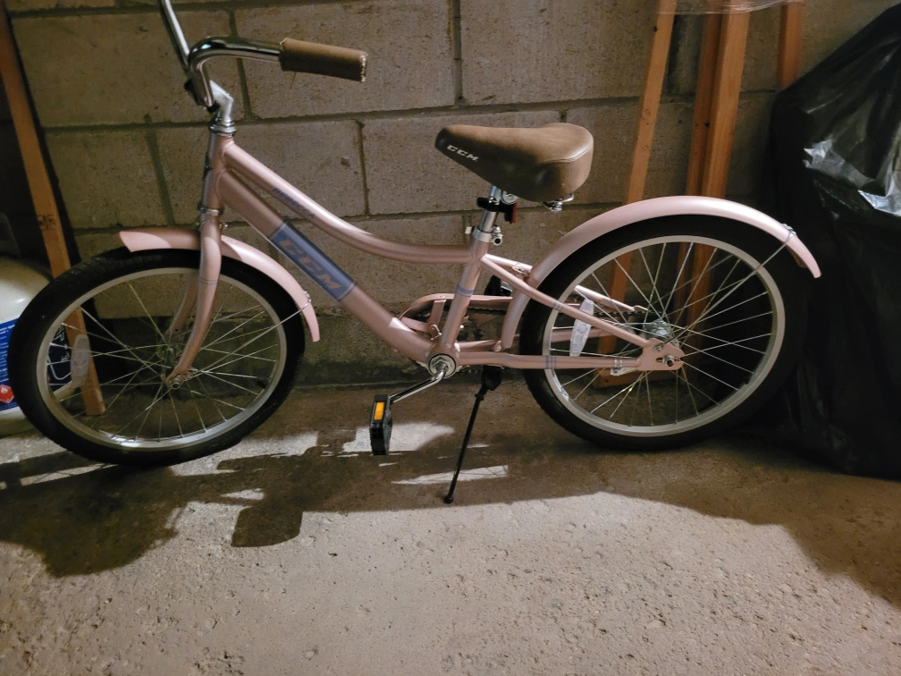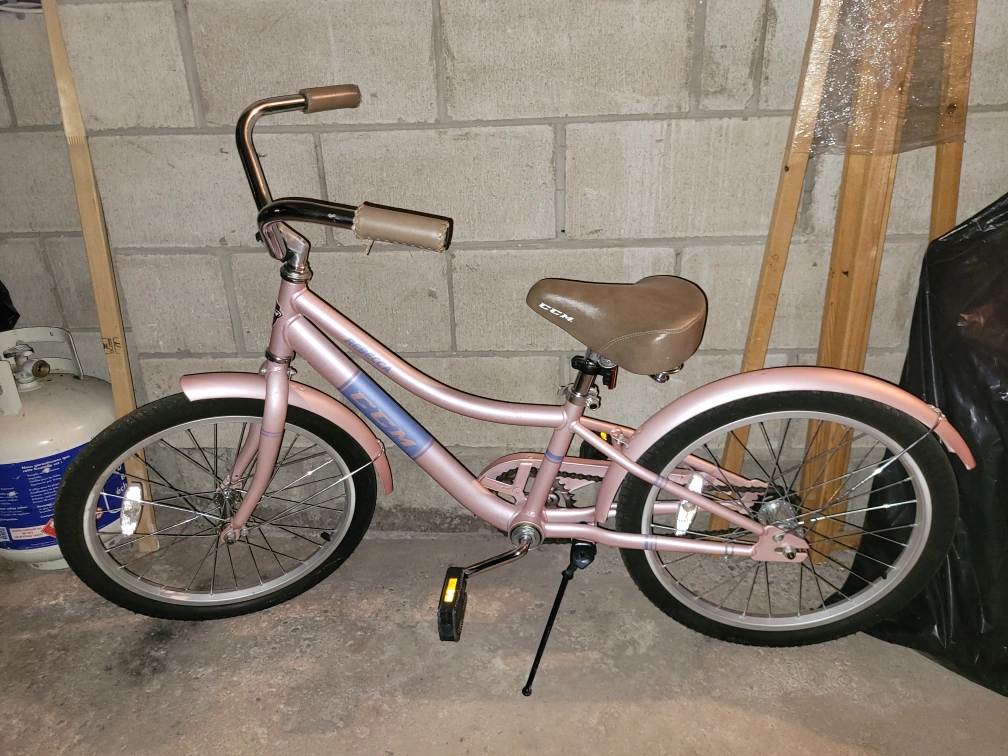 This bike is in good condition and is ready to be enjoyed by a young girl. It has been well-maintained and is in working order. It is a great option for a first bike or for a child who is learning to ride. recommended ages 6-10.