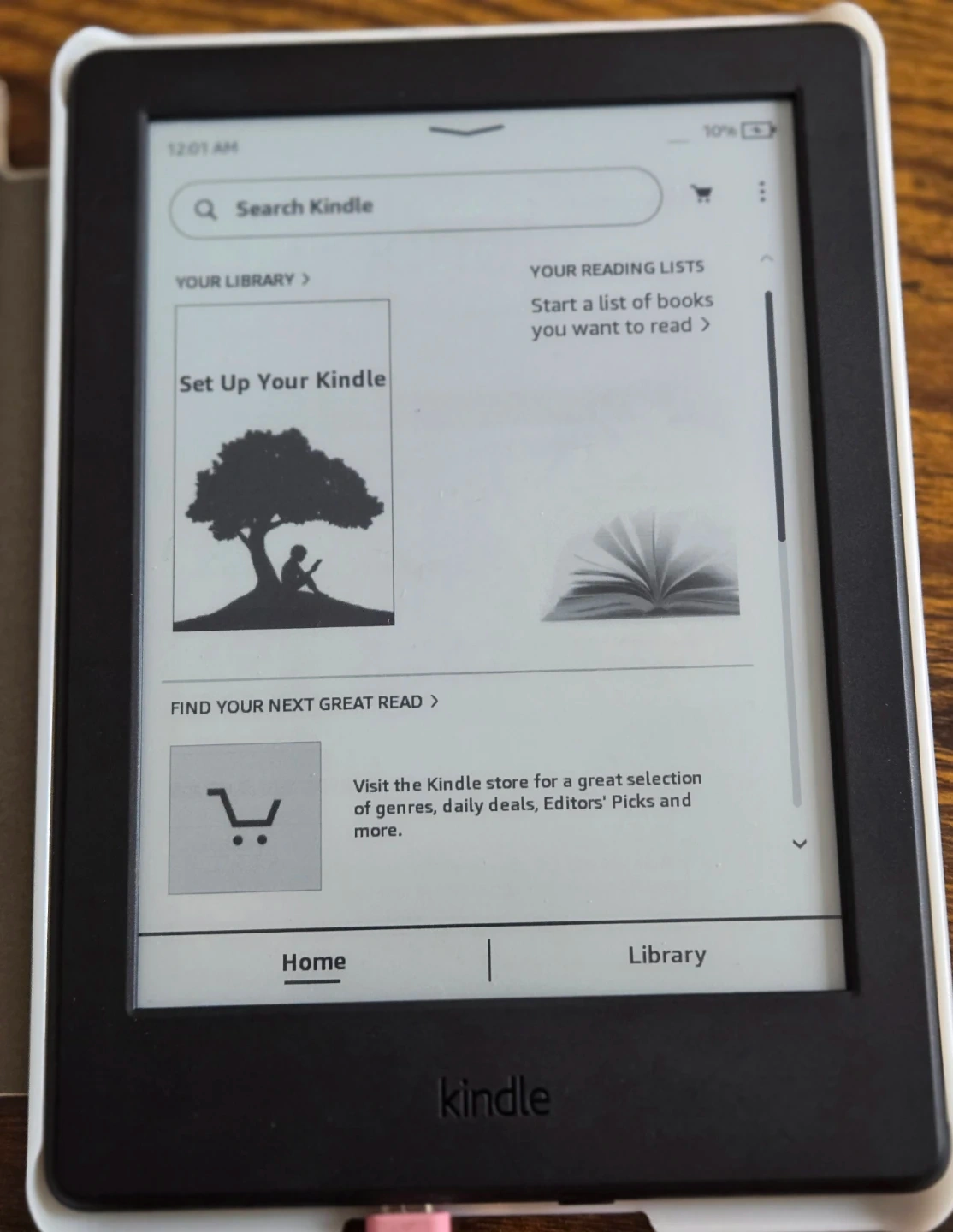 This is an Amazon Kindle e-reader. It features a black bezel and a decorative marble-patterned cover. It's perfect for reading all your books on the go! Cover i purchased seperately and a tad large, but does hold it. Can replace easily.
