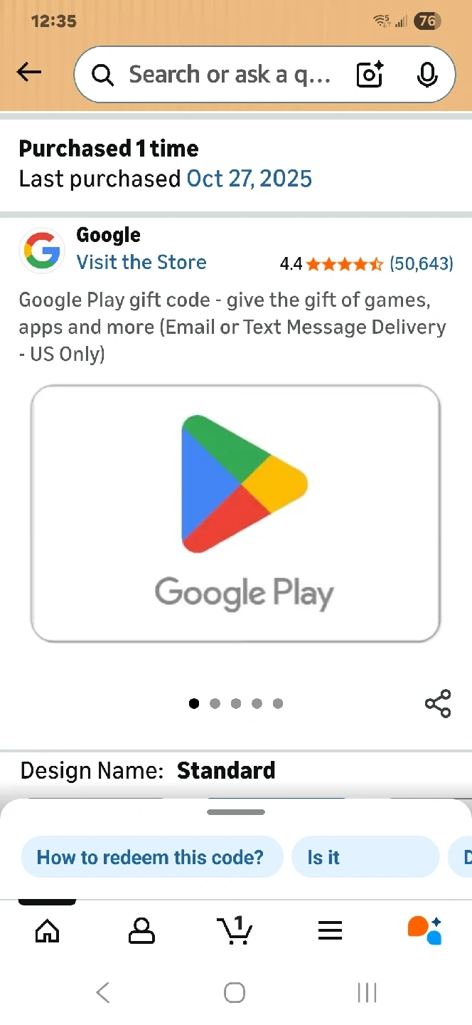 60Selling a Google Play gift card! It's perfect for games, apps, and more. Last purchased on October 27, 2025