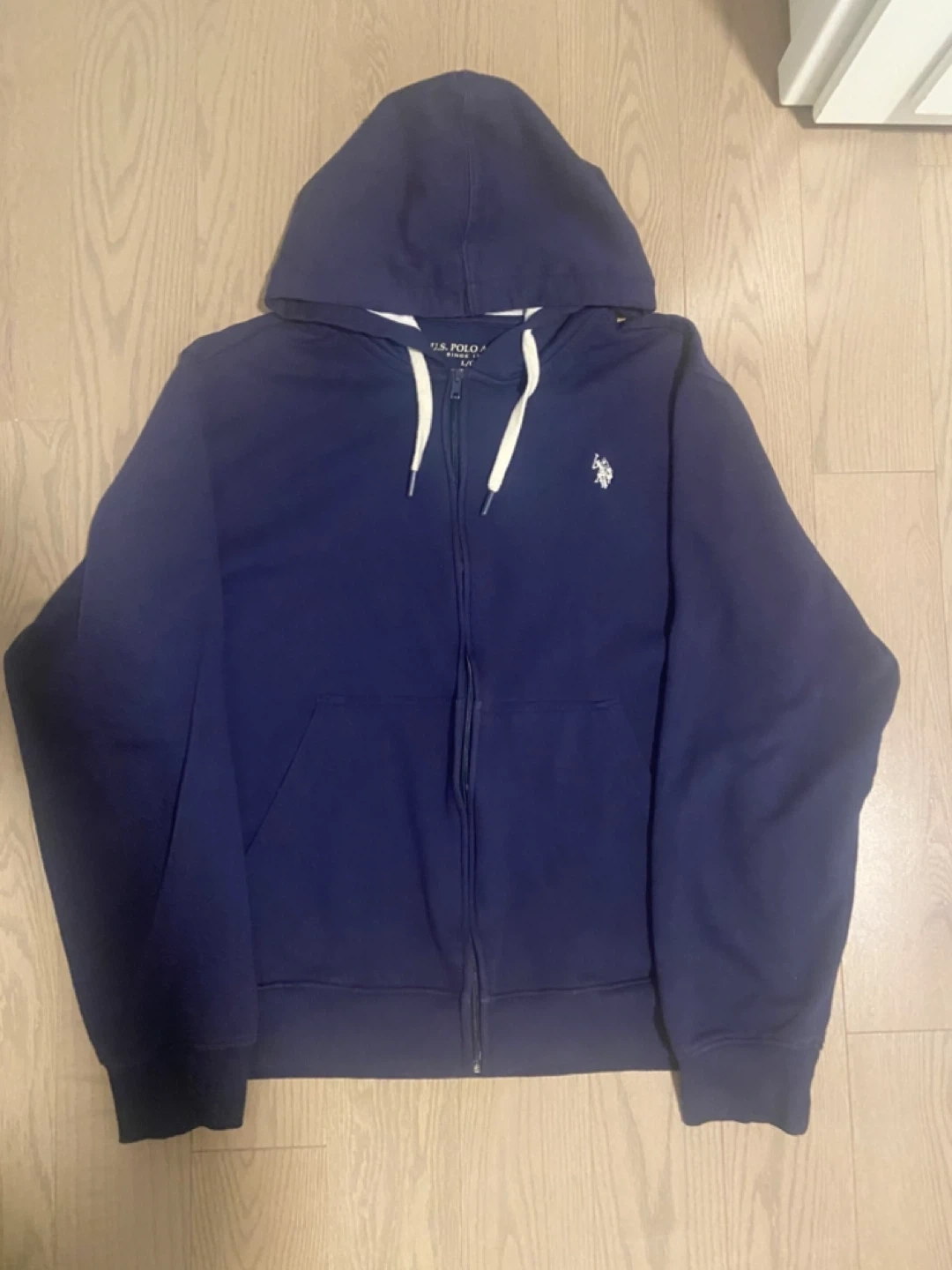 20Selling a navy blue US Polo Assn. hoodie in size large! It's in great condition and perfect for layering or wearing on its own. The classic design features a full zip and the iconic US Polo Assn. logo. A comfortable and stylish addition to any wardrobe!