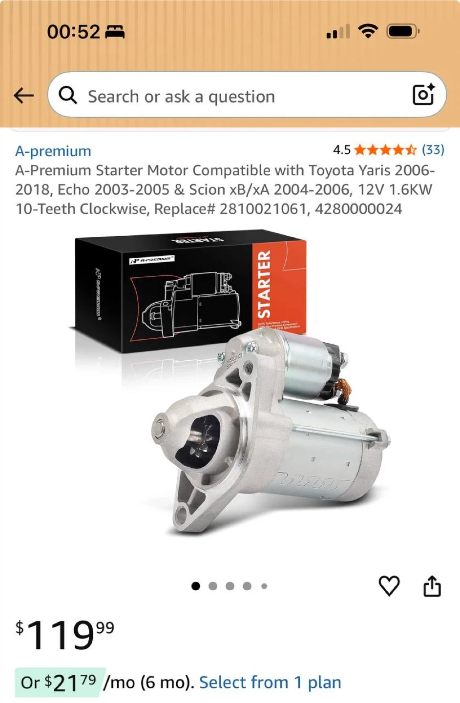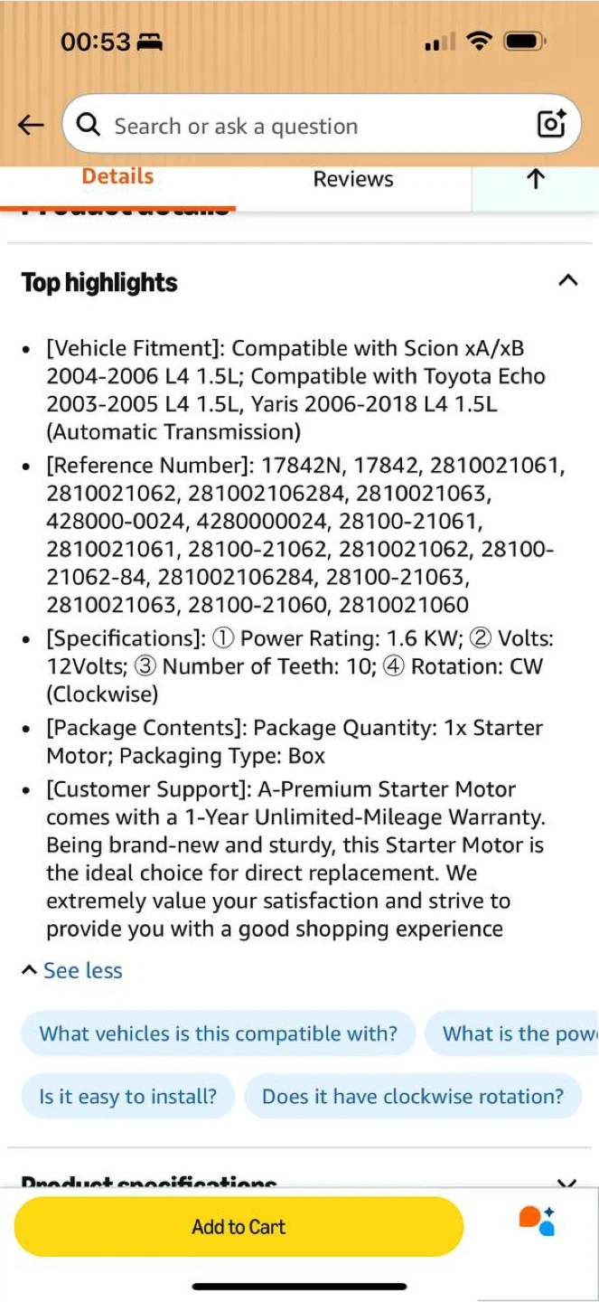 A-Premium Starter Motor for Toyota Yaris / Echo / Scion xA xB 2003-2018 – NEW
