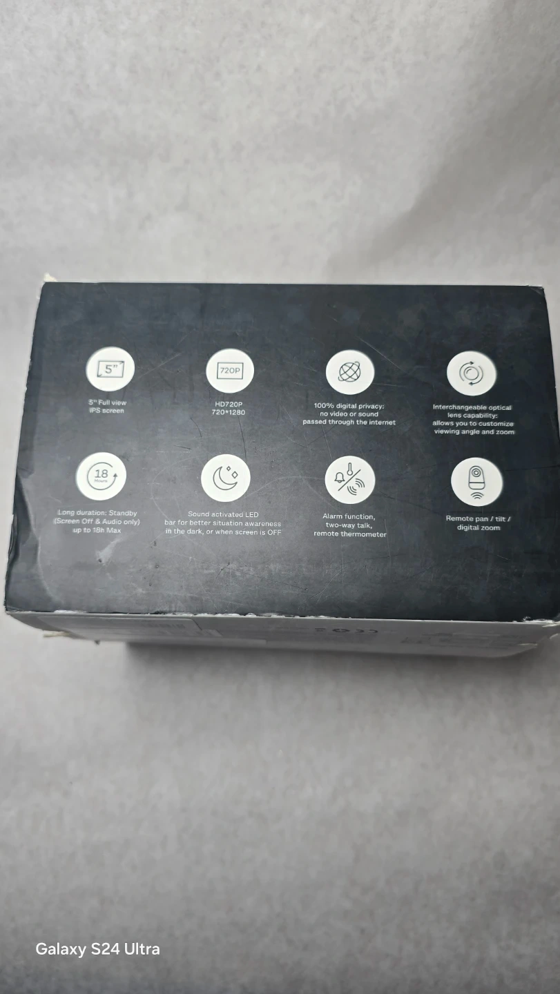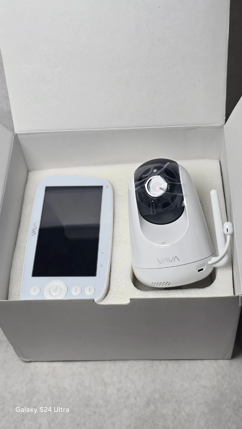 VAVA Baby Monitor with a 5" screen and 720p HD camera. It features a two-way talk function and remote pan/tilt/zoom. Includes original box and packaging.